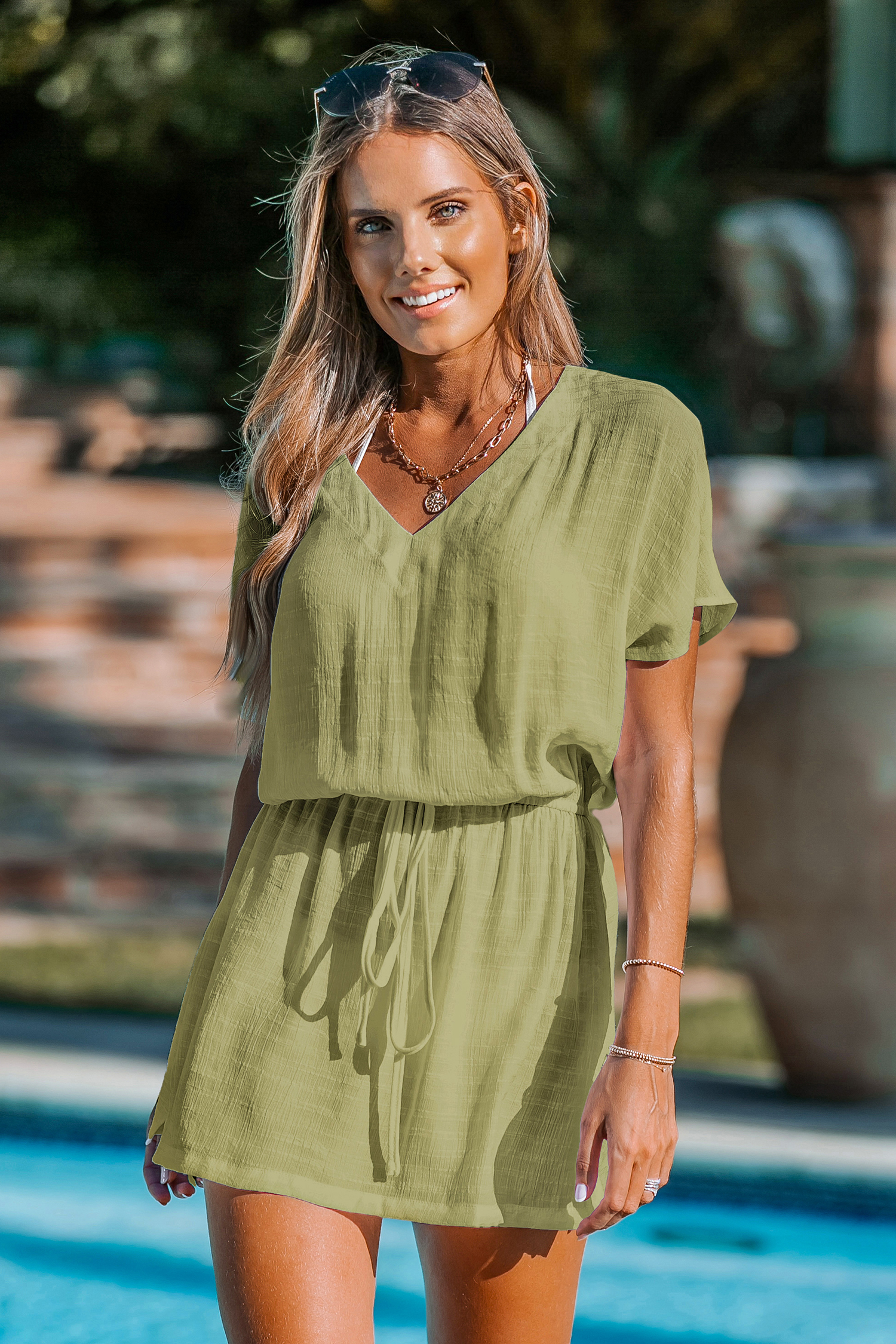 HomeMint Short Sleeve Waist Tie Mini Cover-Up
