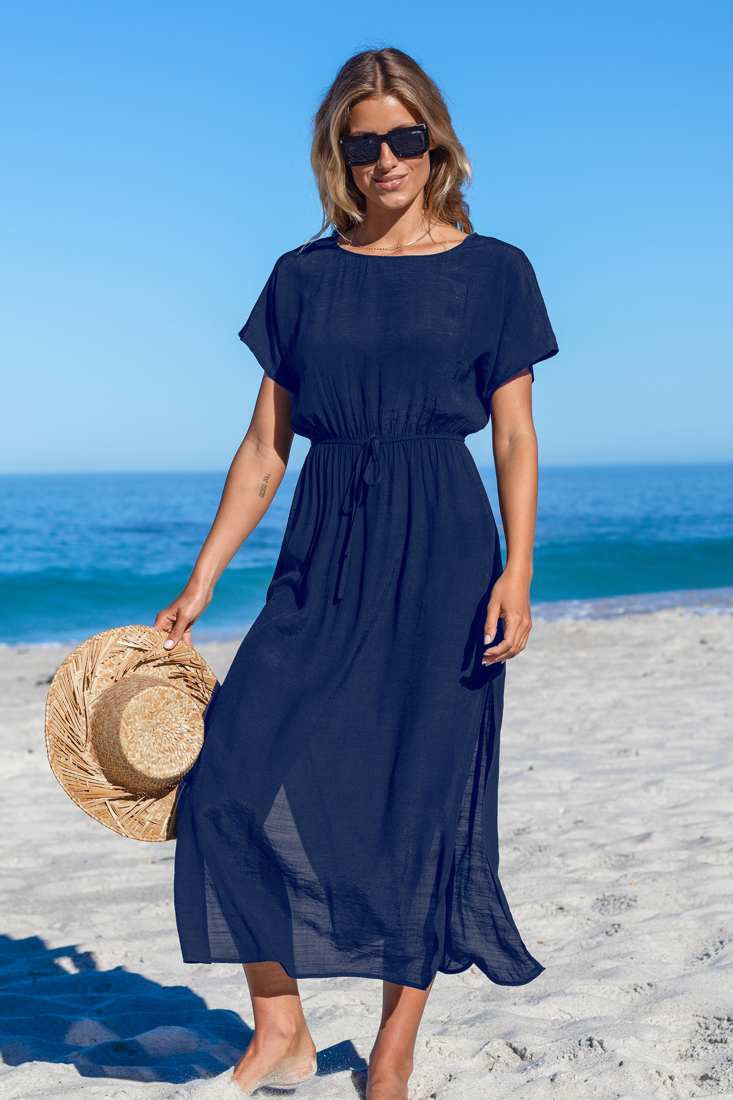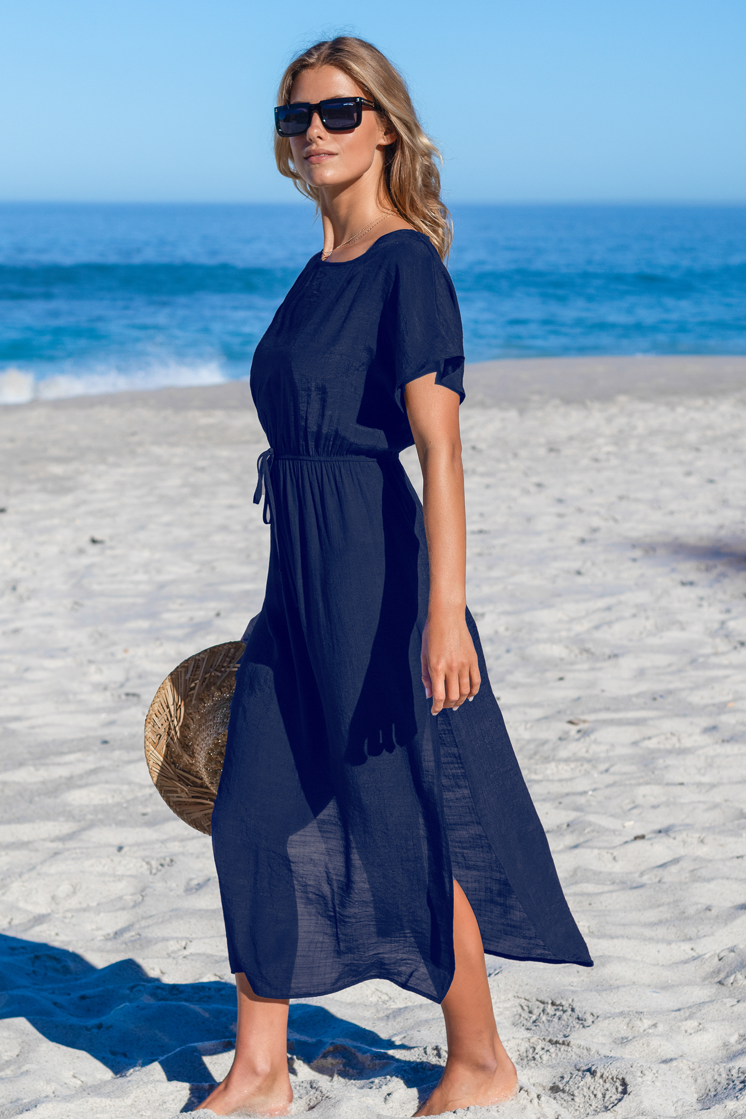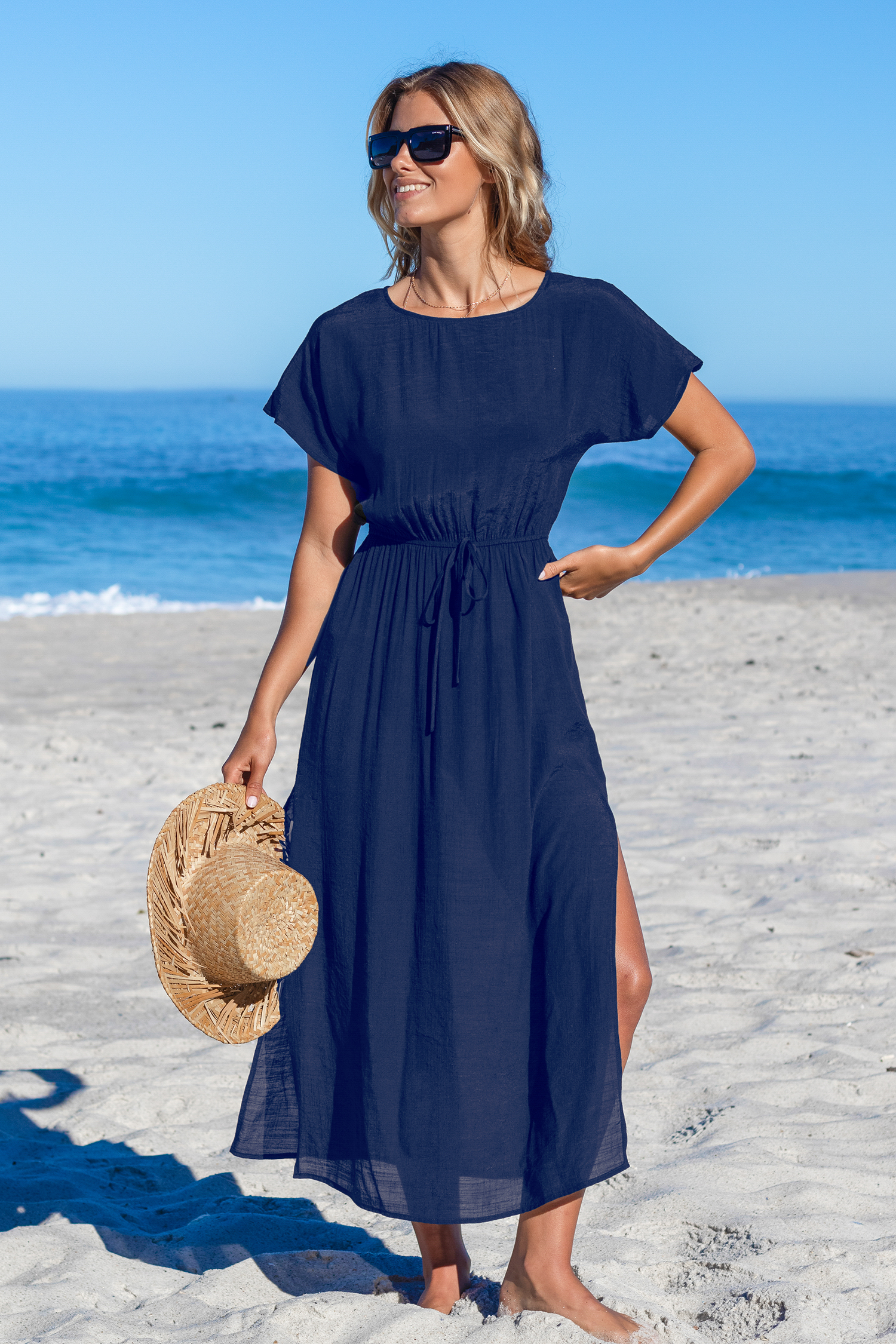 Navy Round Neck Split Seam Maxi Cover-Up
