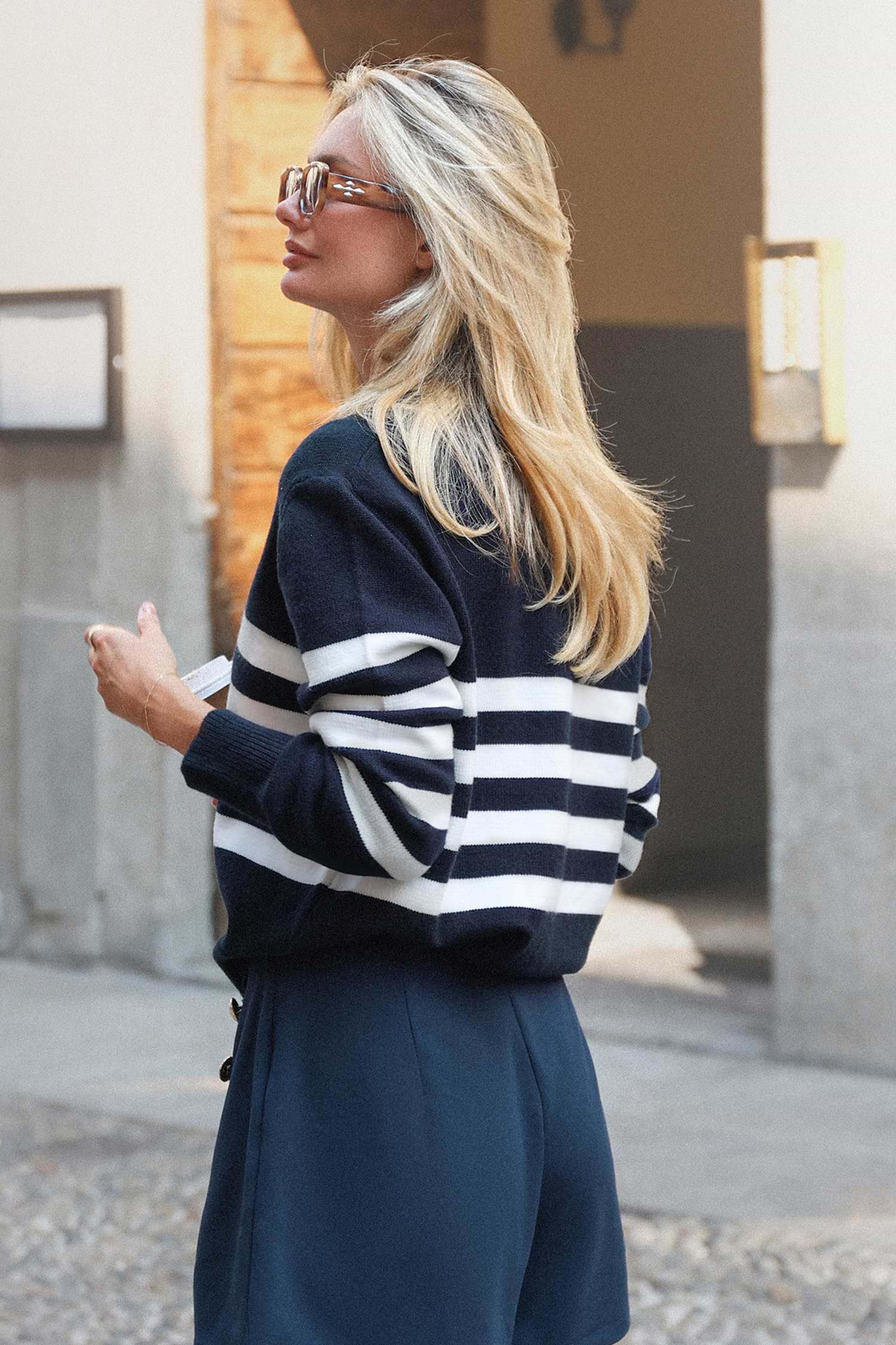 Navy & White Stripe Long Sleeve Stockinette Pullover