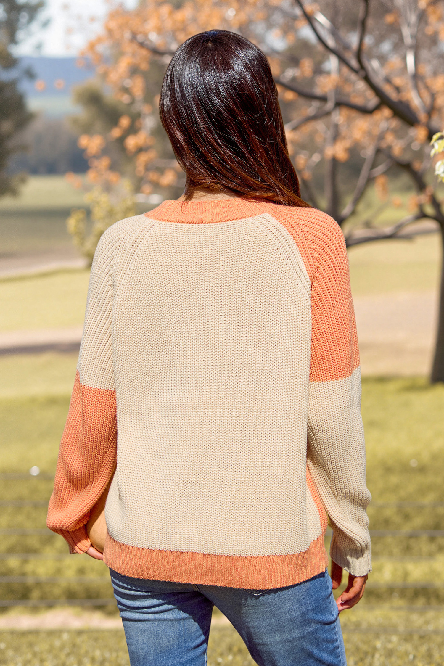 HomeOrange & Apricot Checkered Long Sleeve Sweater