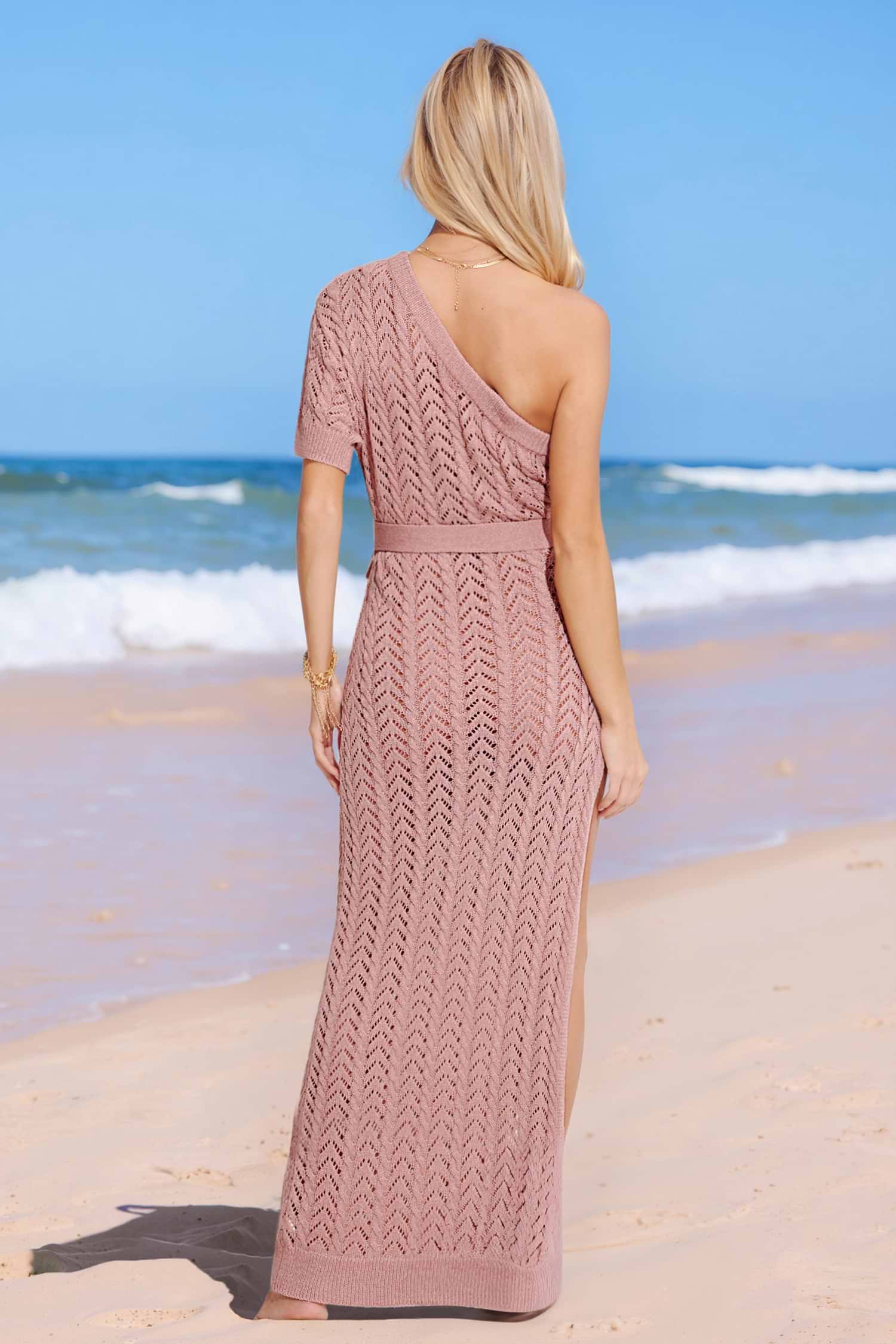 Pink Asymmetrical Neck Cover-Up Maxi Dress