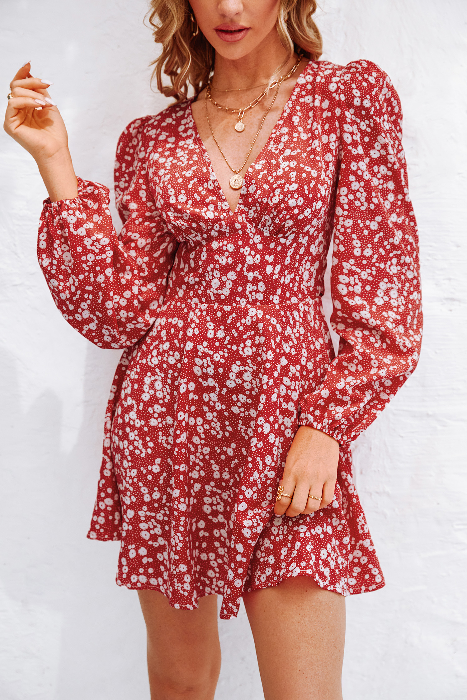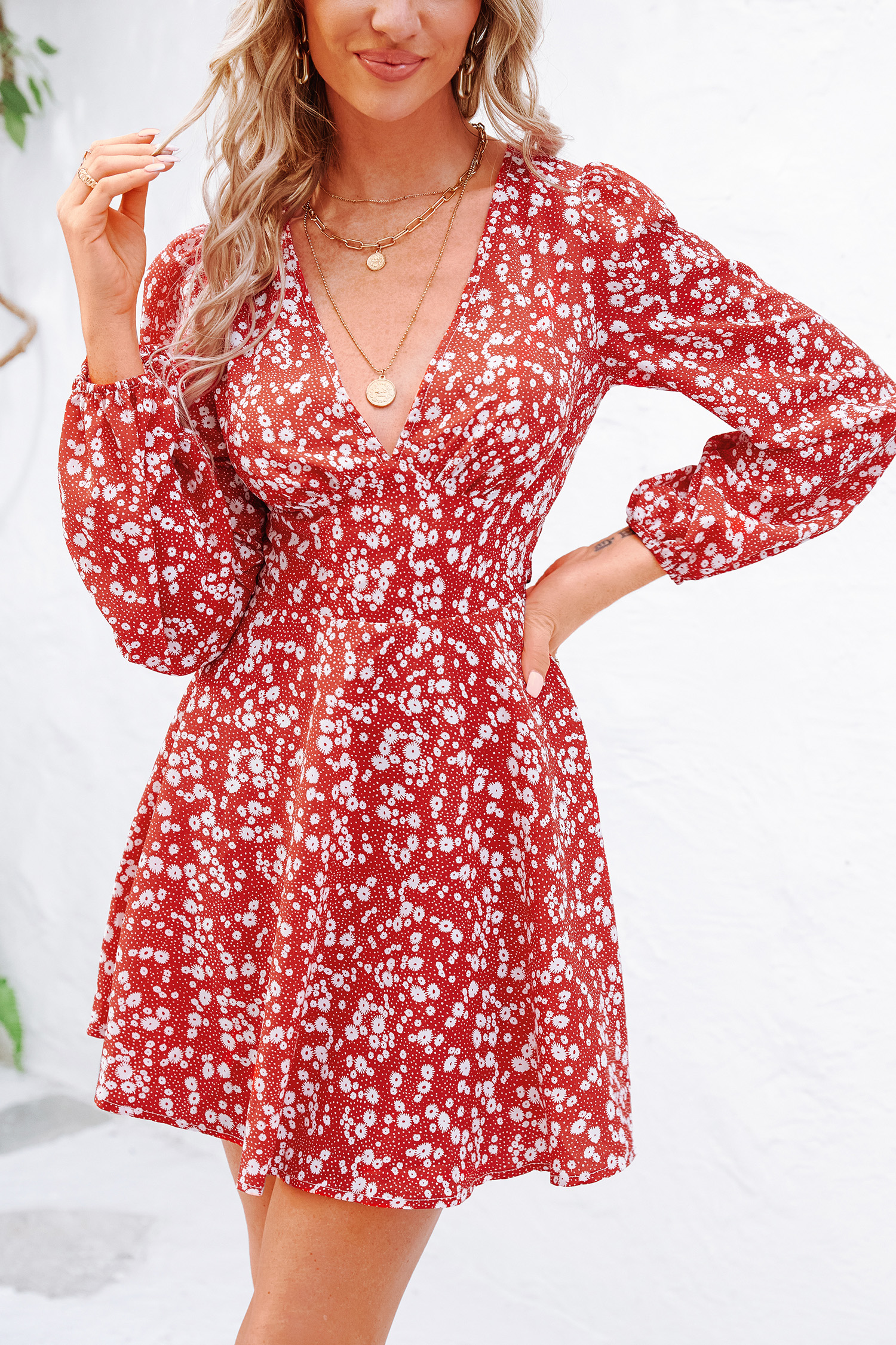 HomeLong Sleeve Pink Flamingo Ditsy Floral Mini Dress