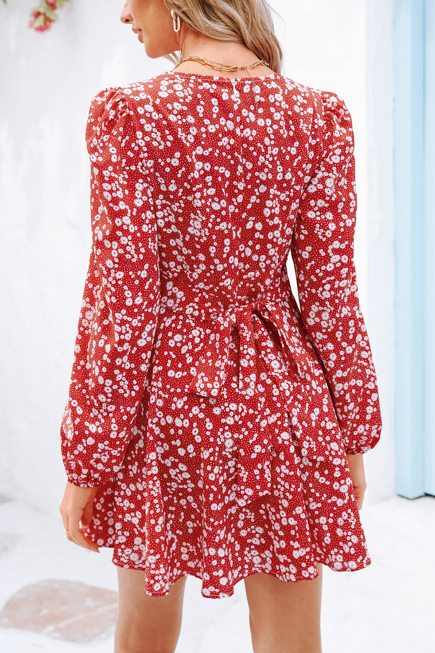 Long Sleeve Pink Flamingo Ditsy Floral Mini Dress
