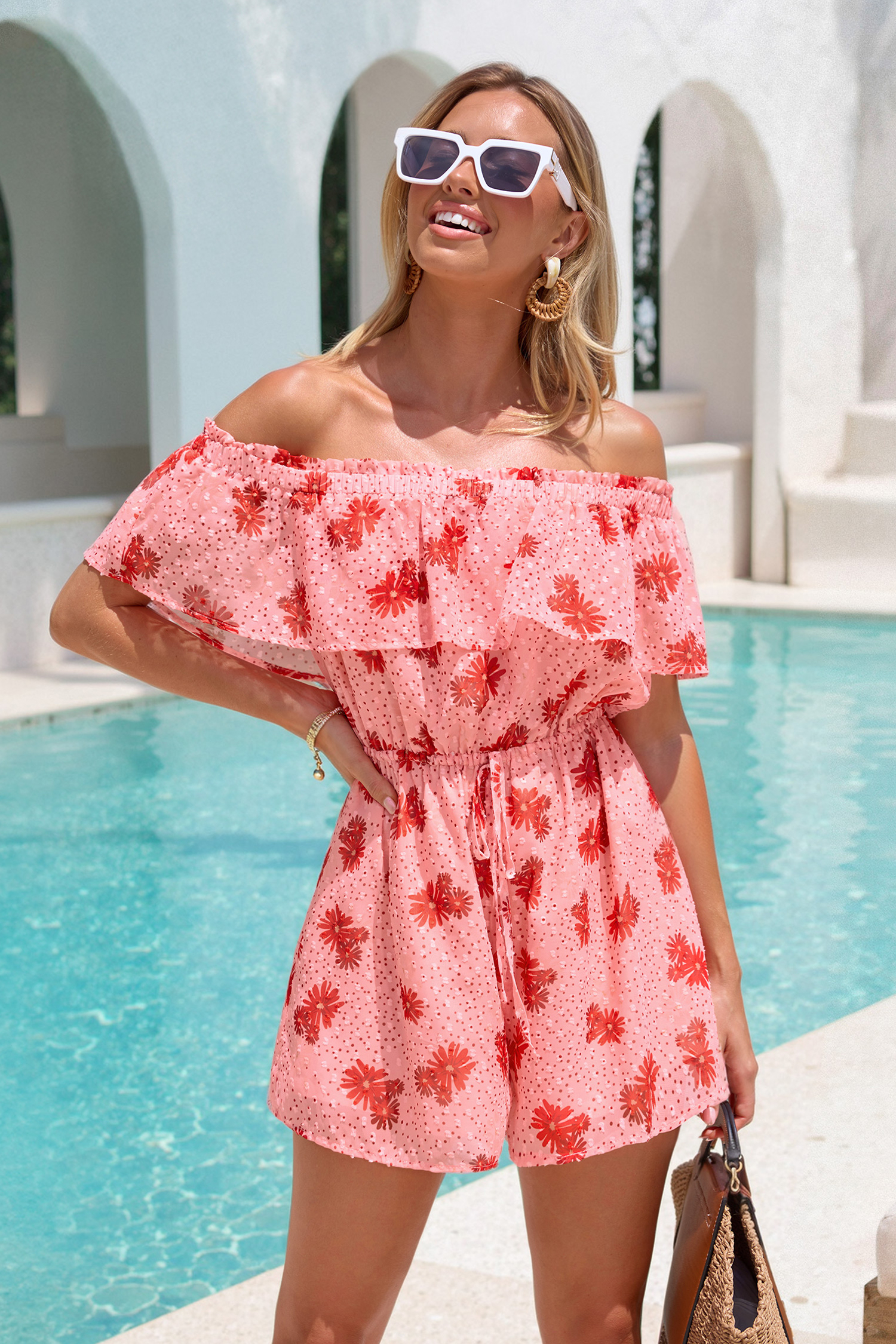 HomePink Floral Off-Shoulder Straight Leg Romper