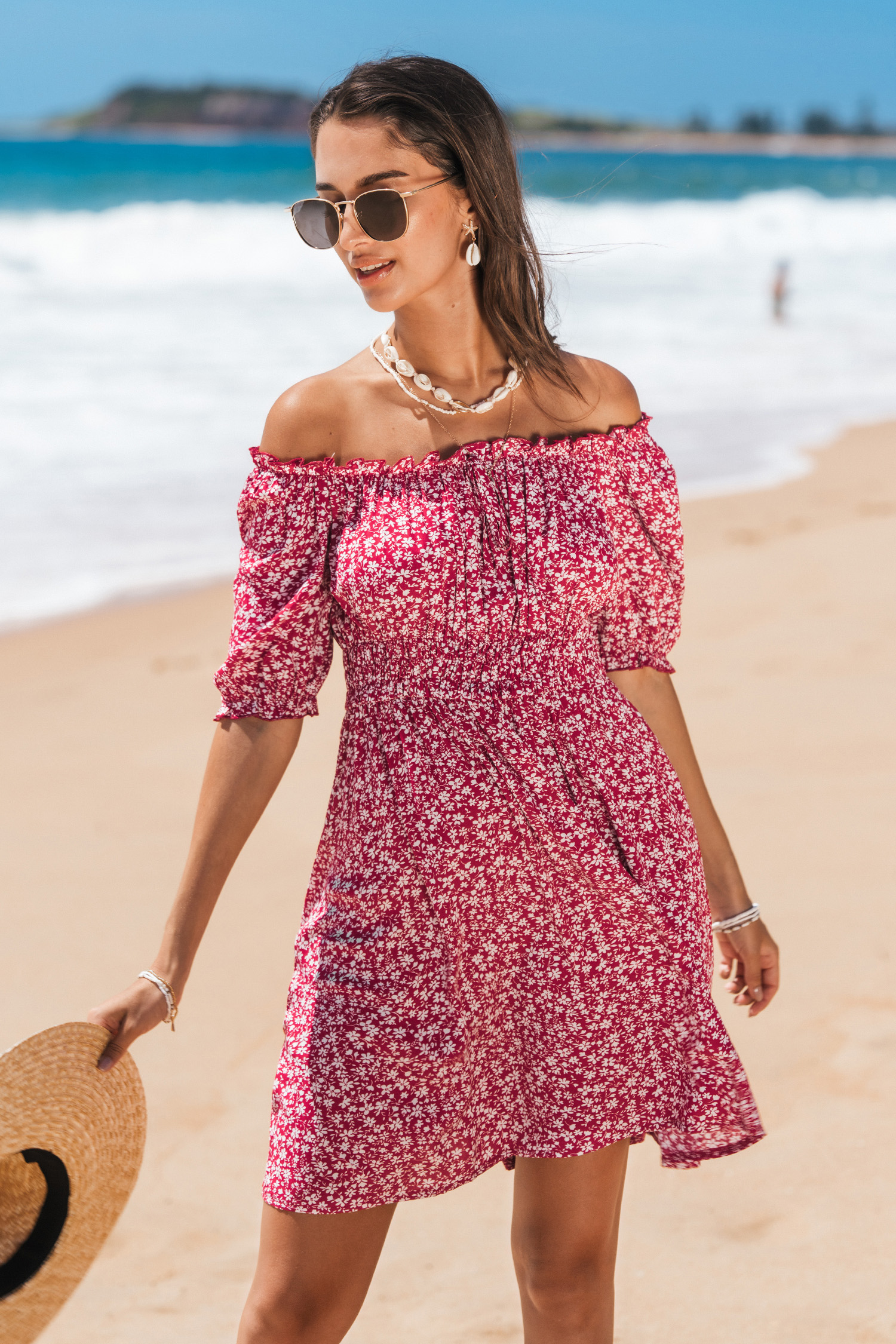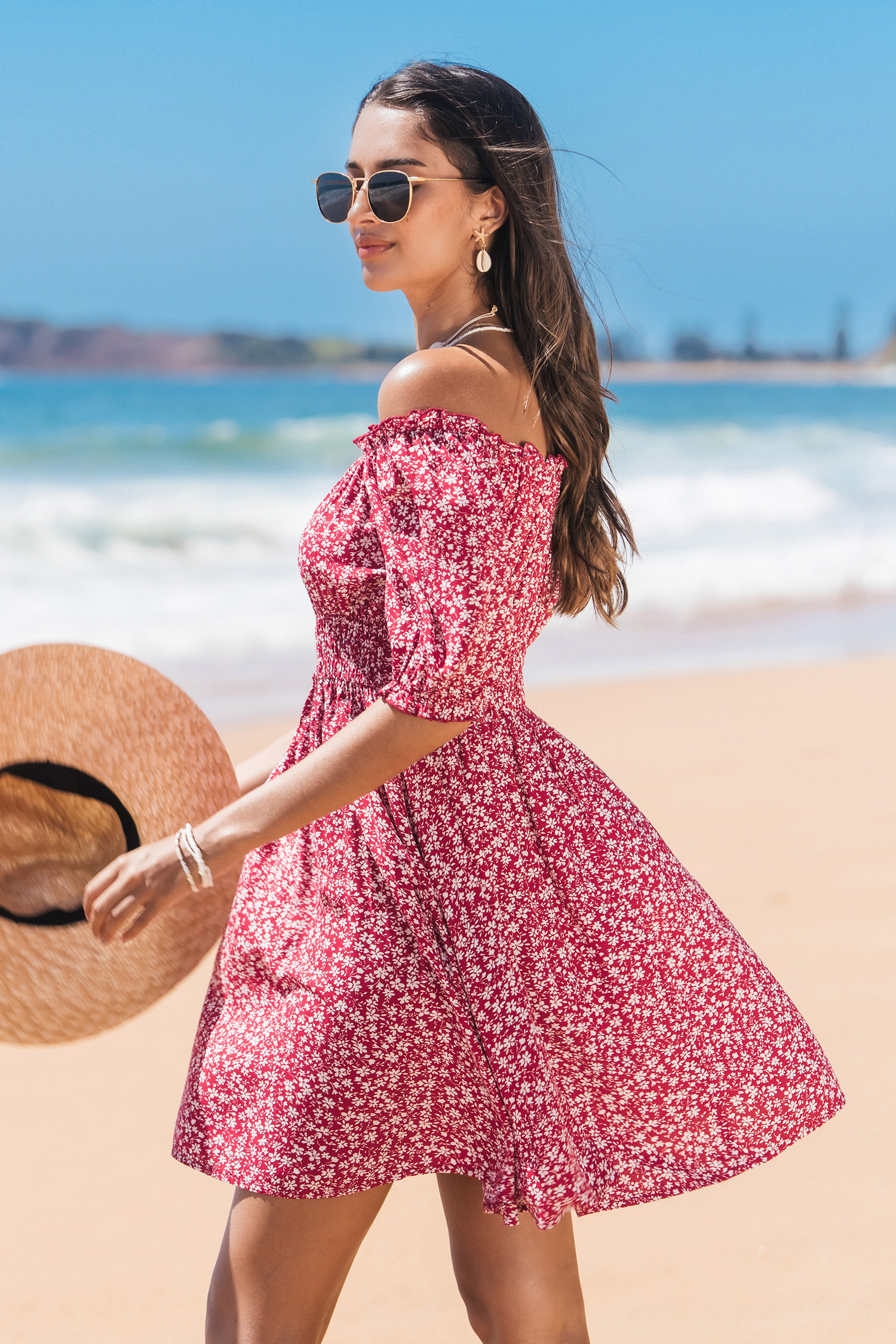 HomeRed Florals Off-Shoulder Mini Dress