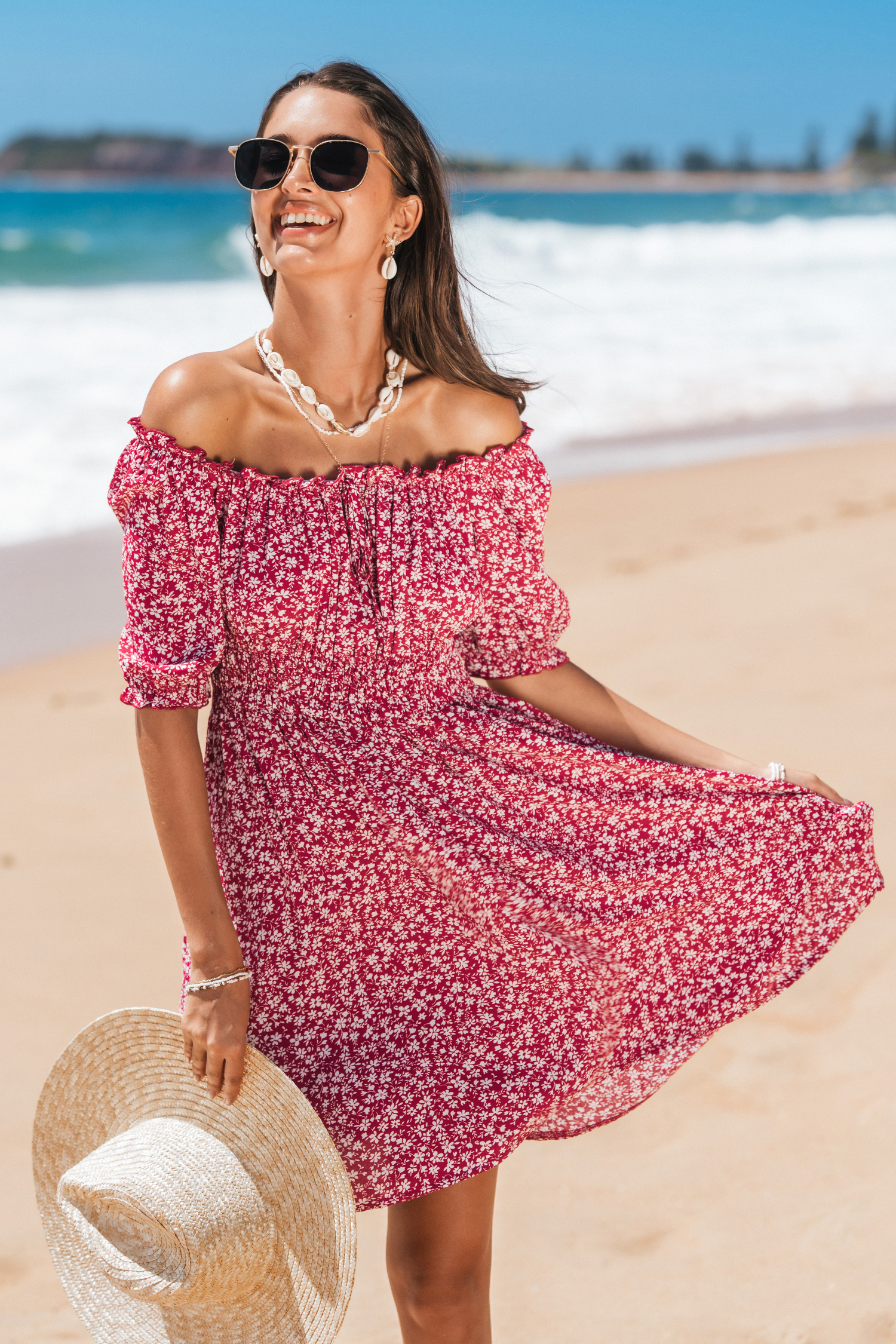 Red Florals Off-Shoulder Mini Dress