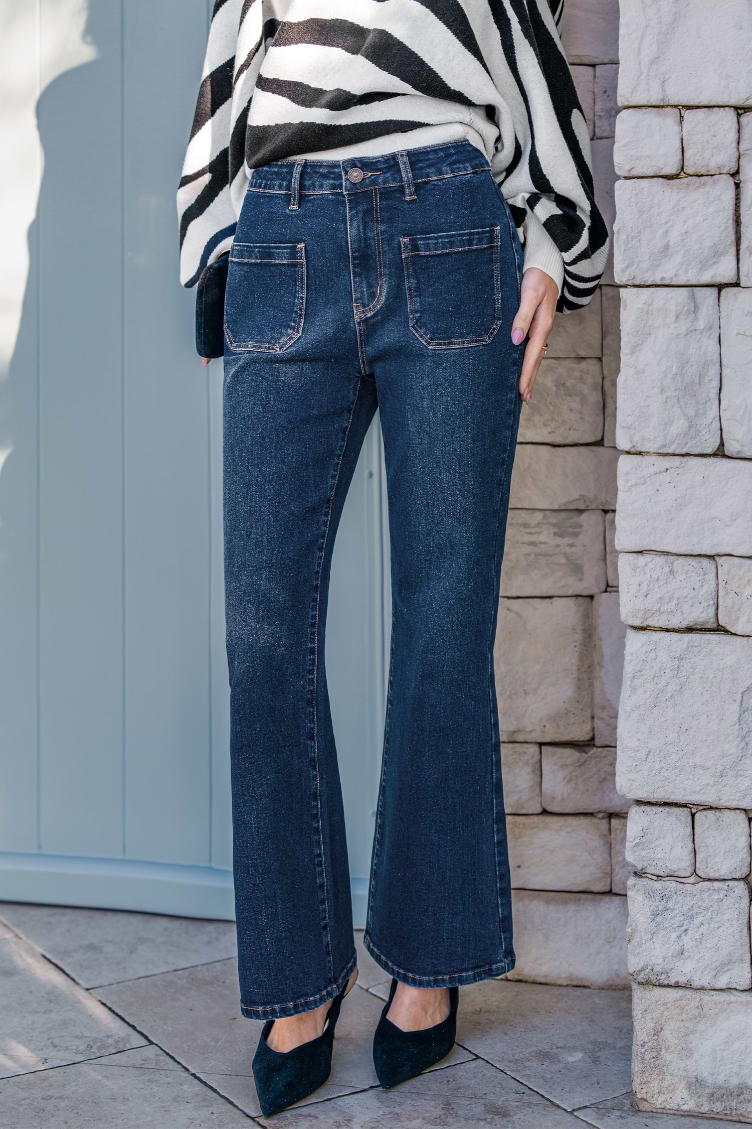 The Rise & Shine Blue Jeans bring confident, easygoing style! They feature belt loops, pockets, and a flare leg for a flattering, balanced silhouette.