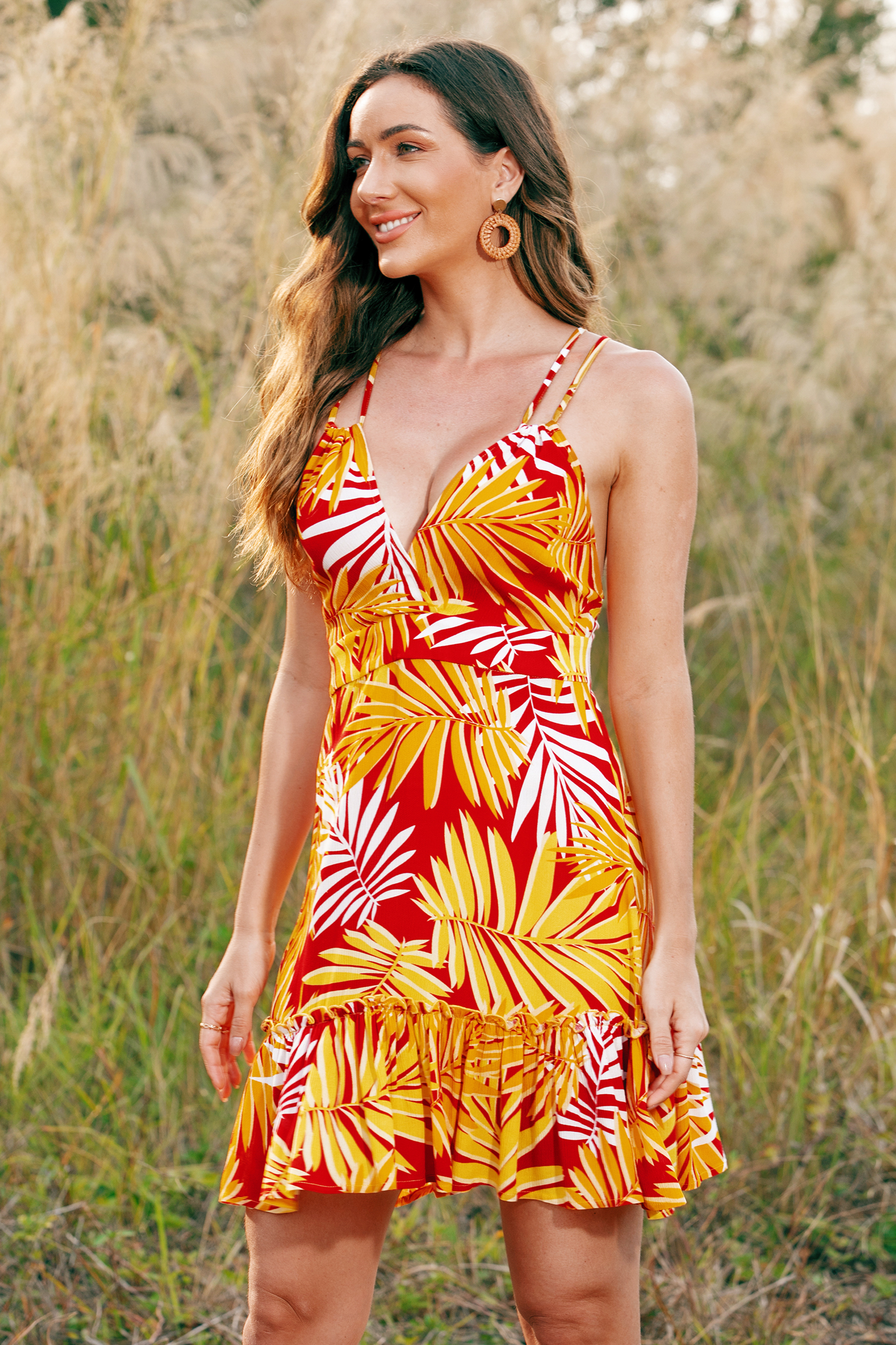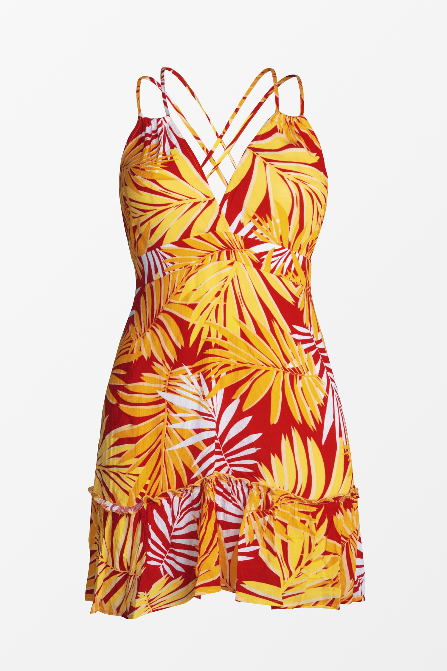 HomeRoyal Thin Strap Tropical Plants A-Shape Dress