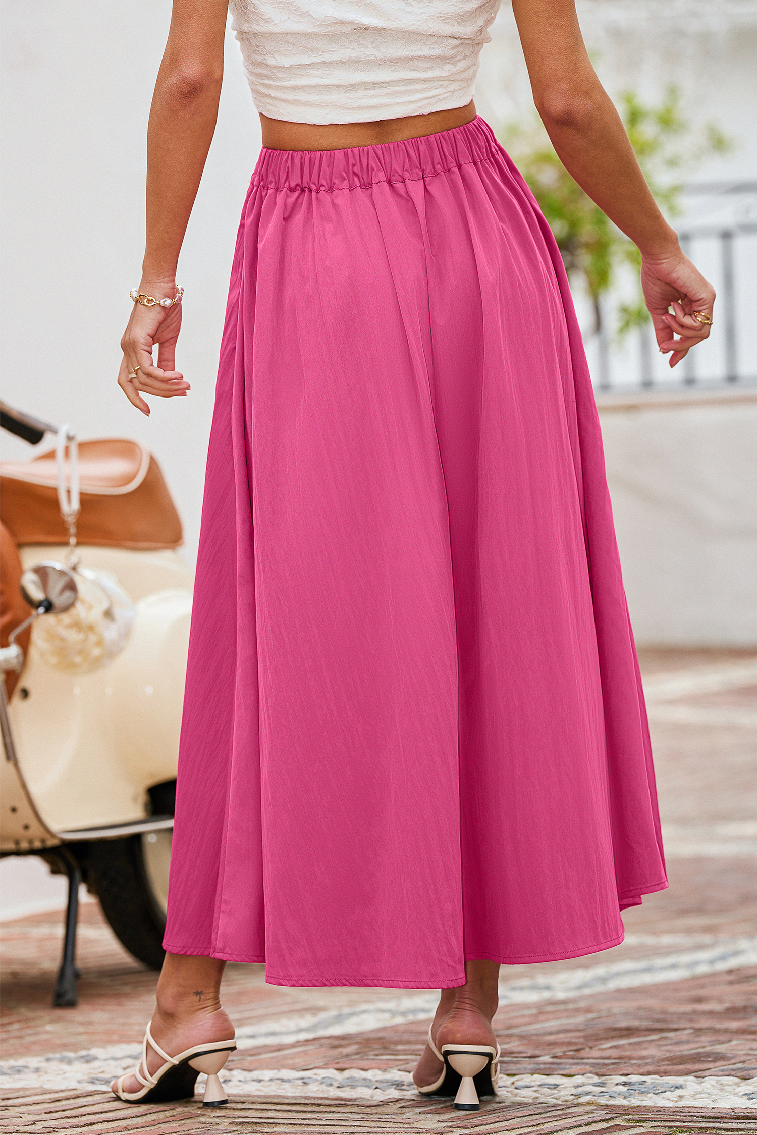 The Runway Pink Skirt brings bold, confident energy in a flowing, sophisticated silhouette! An elasticized waist and maxi length keep it breezy and effortless, perfect for making an entrance wherever you go.