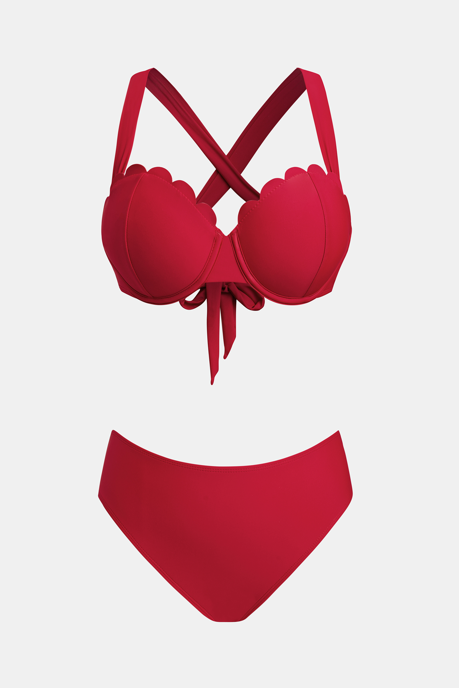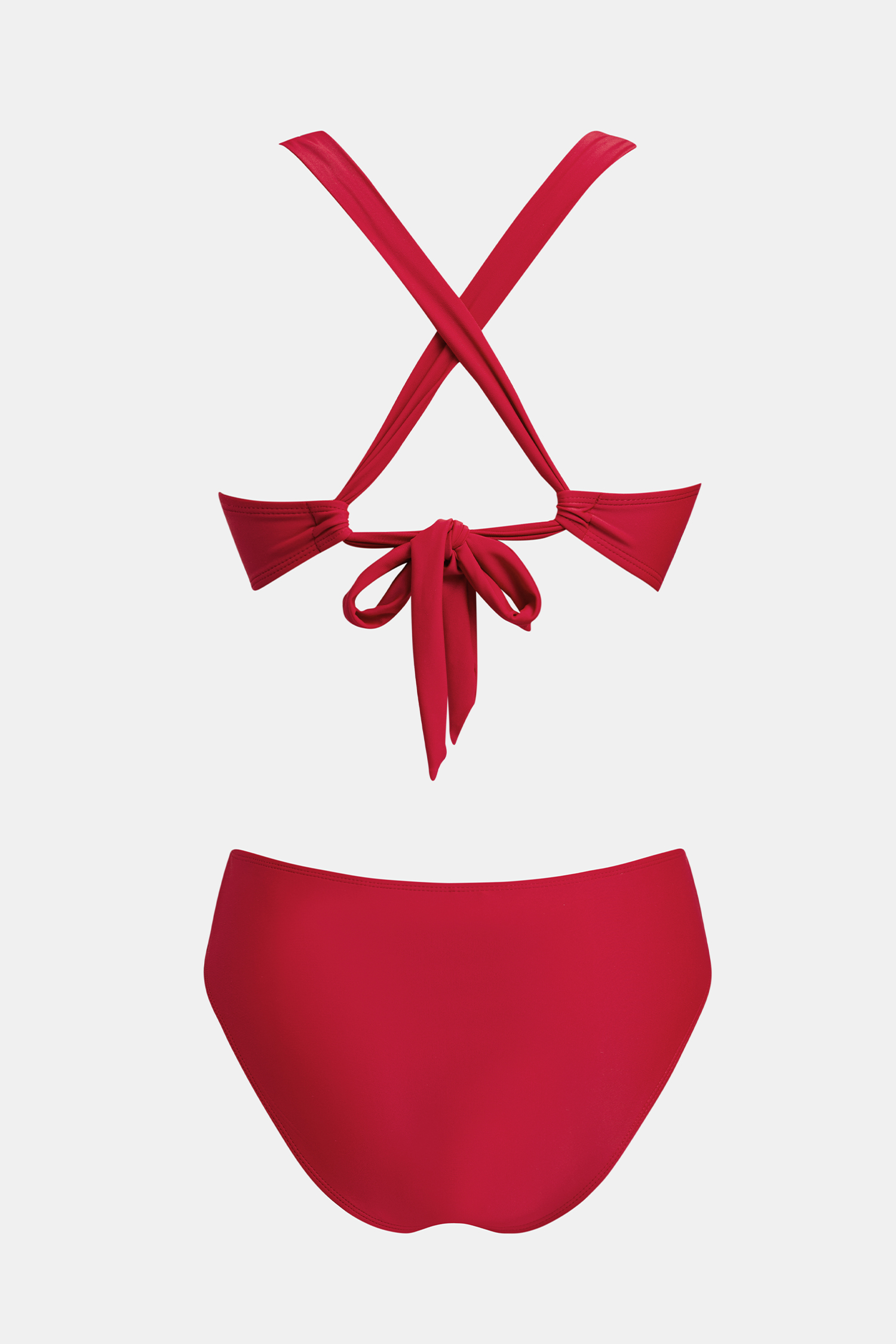 Relax in style with the Sangria Bliss Bikini Set! The diamond neckline and crossback straps provide a flattering, secure fit, while high bust support and underwire offer comfort and confidence. With a mid-rise and classic bum coverage, this set is perfect for sunny days.