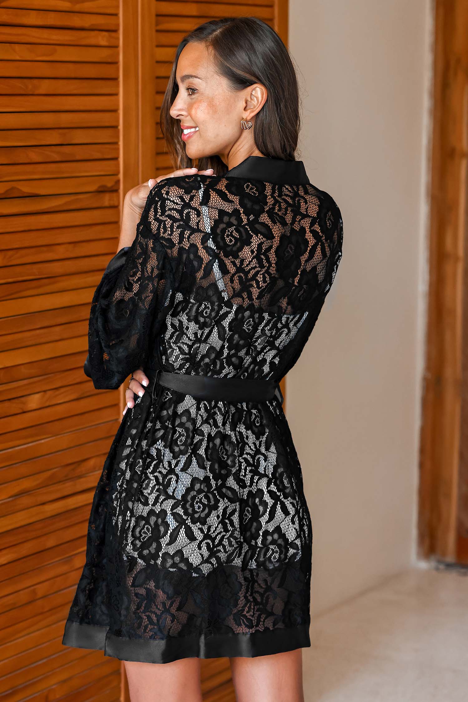 HomeSatin & Black Lace Robe
