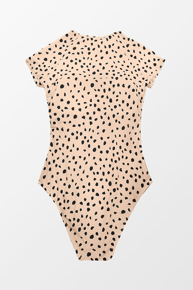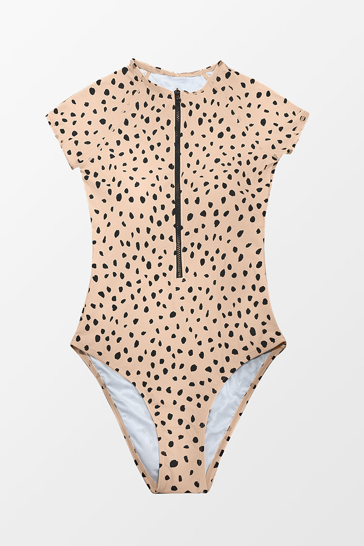 Short Sleeve Zip Front One Piece Swimsuit