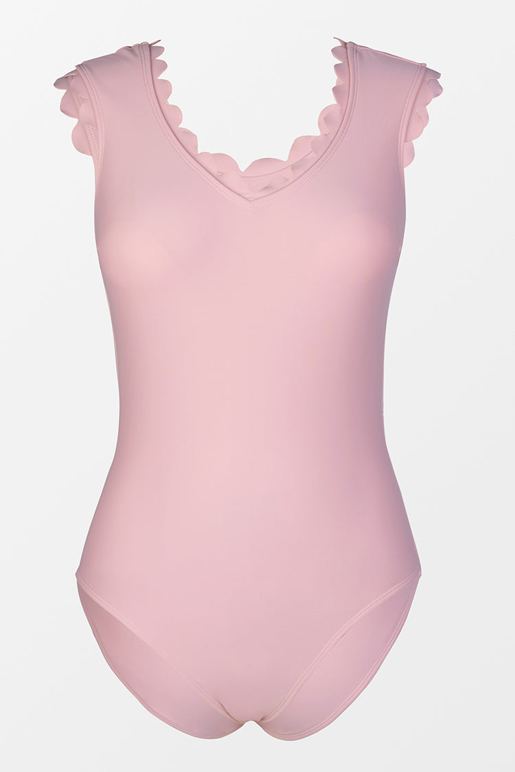 Sidney Pink V-neck Scalloped One Piece Swimsuit