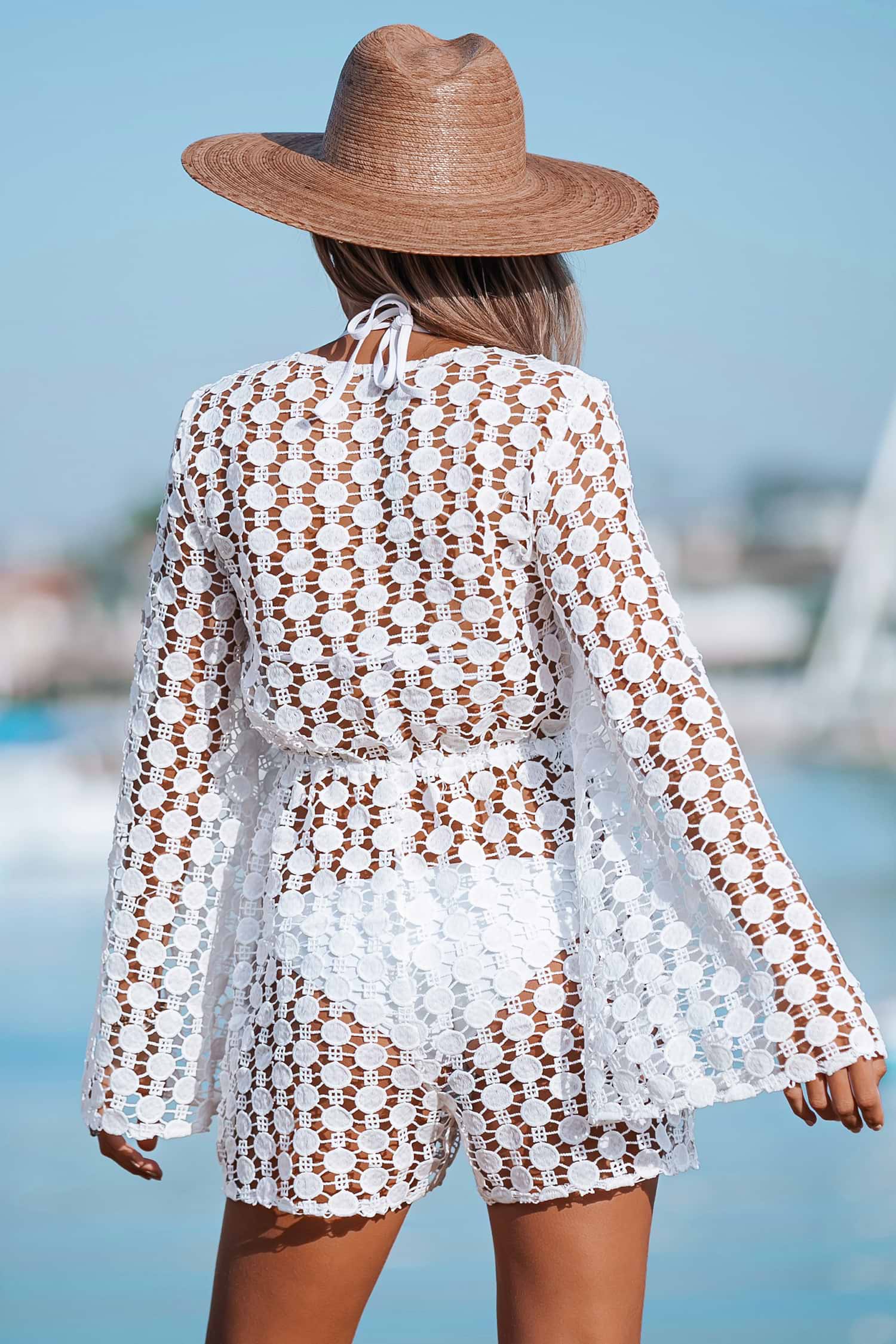 Stardust Lace Plunge Crop Top & Short Cover-Up Set