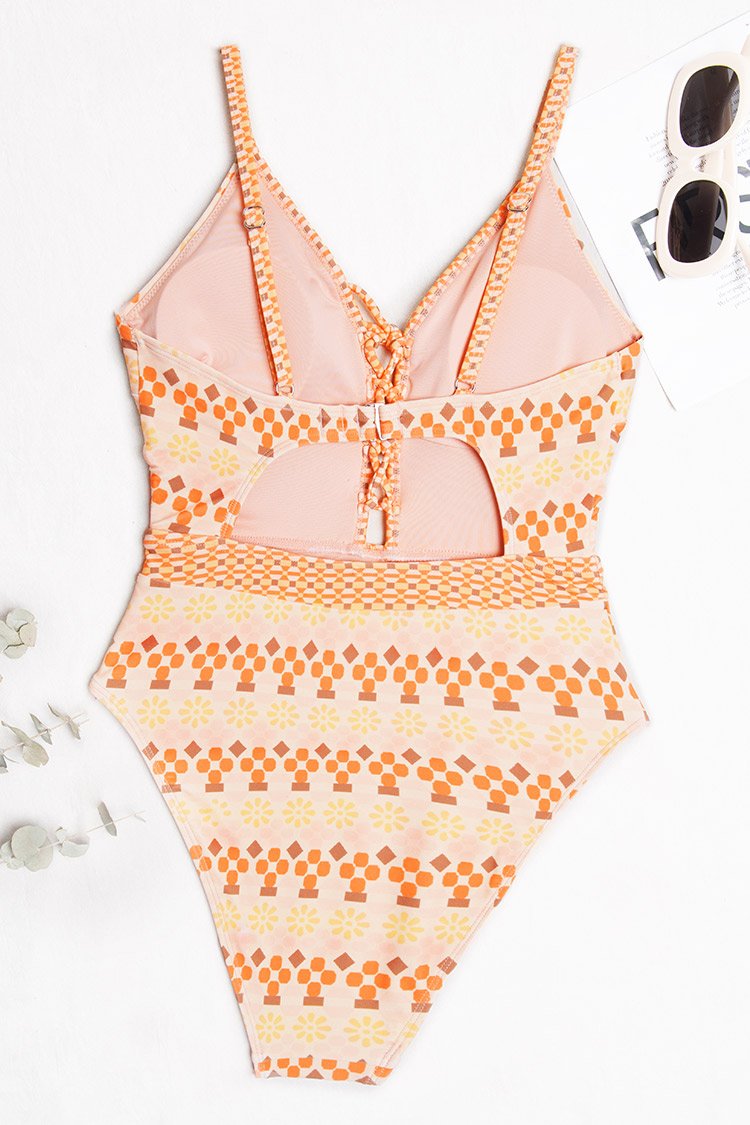 HomeGeo Print Lace-up One Piece Swimsuit