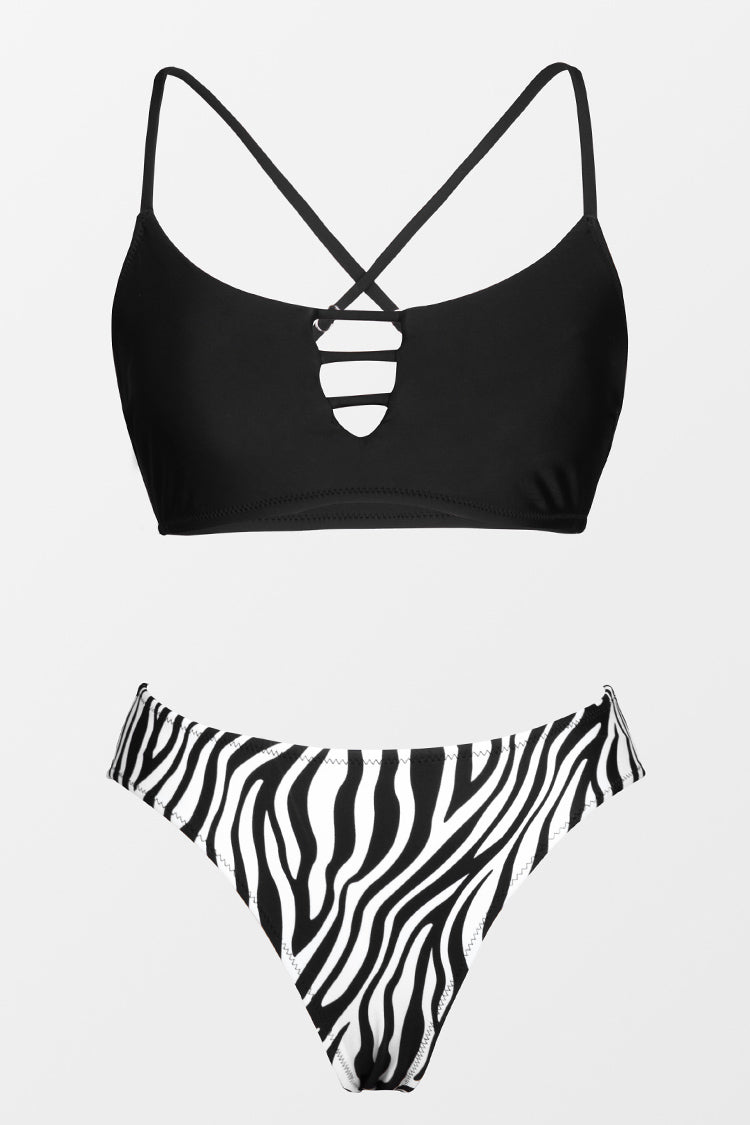 Stella Hollow Out Criss Cross Zebra Print Bikini