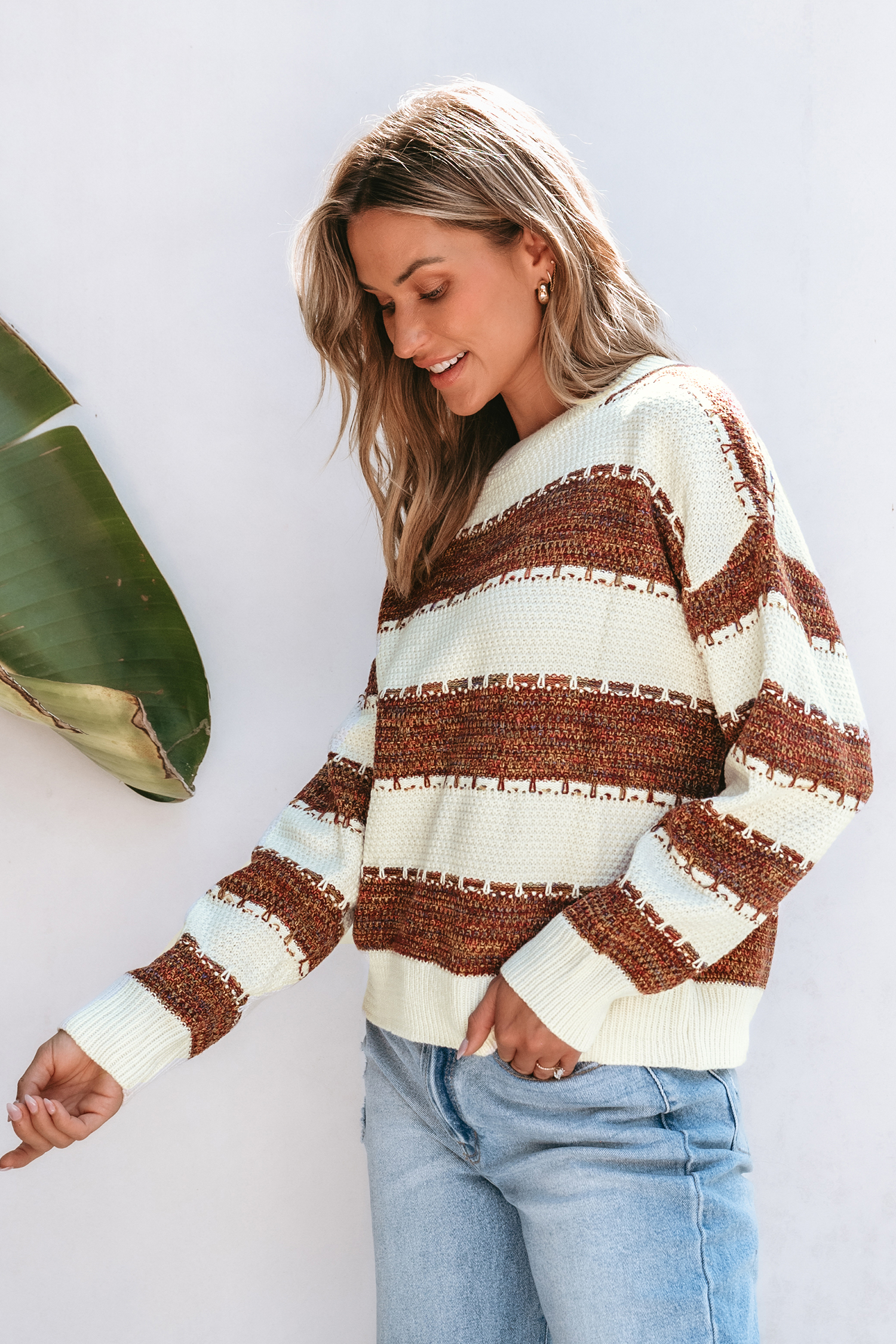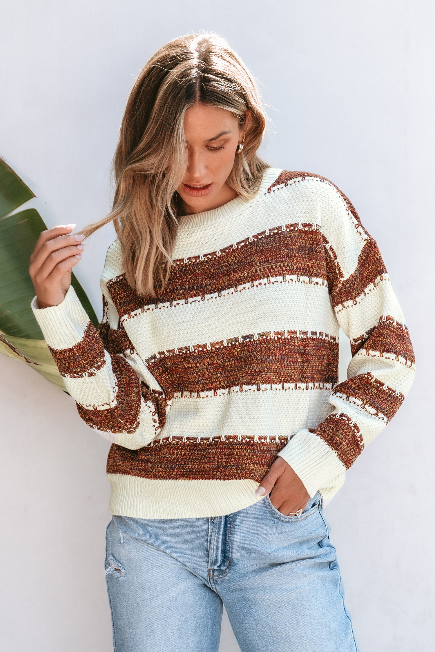 HomeStriped Drop Shoulder Long Sleeve Sweater
