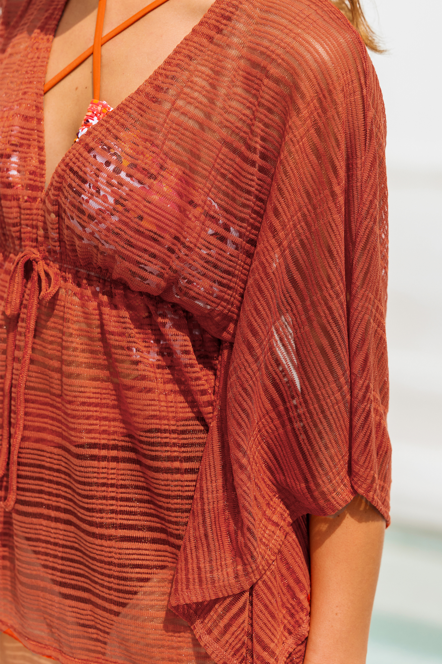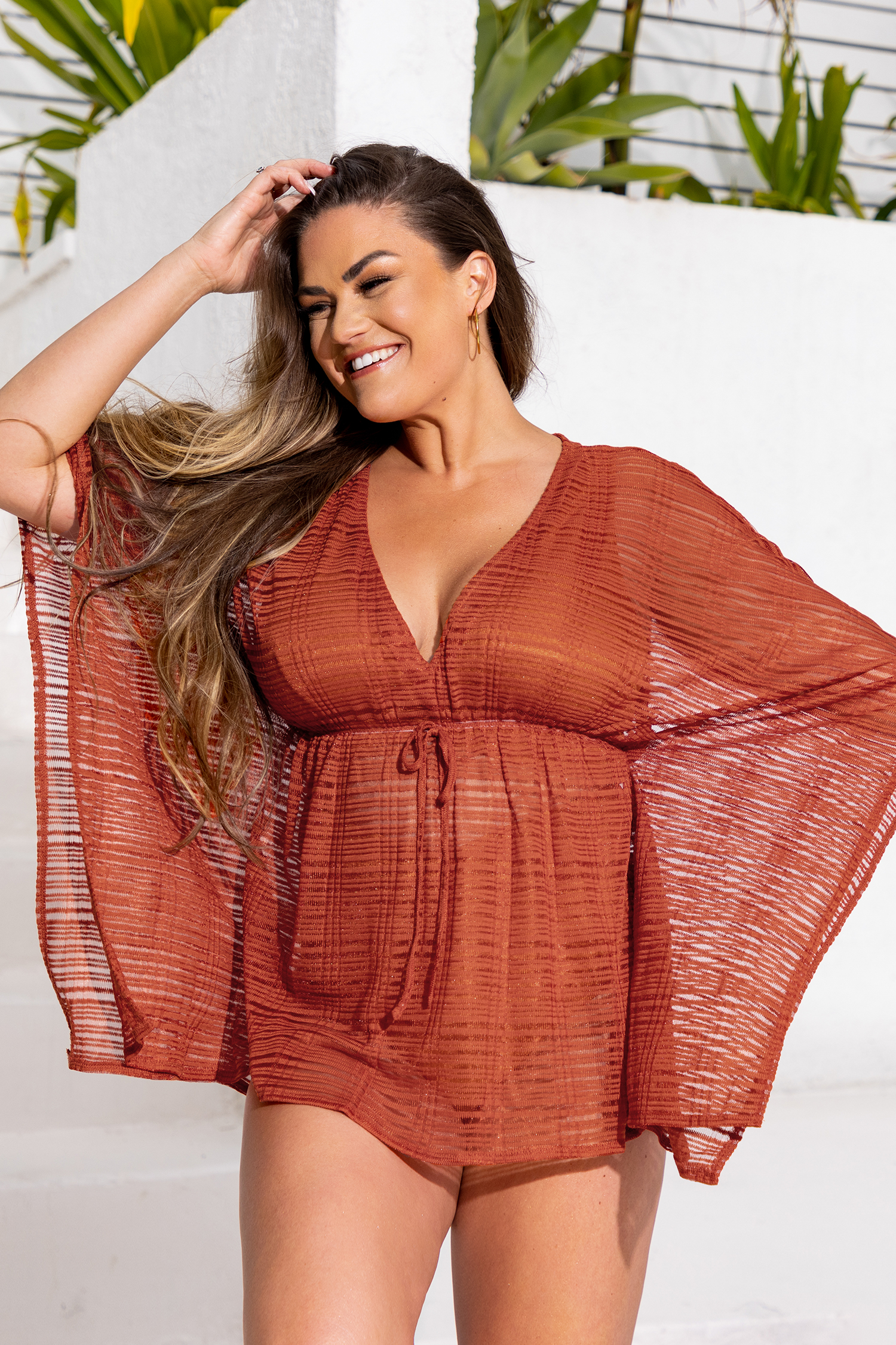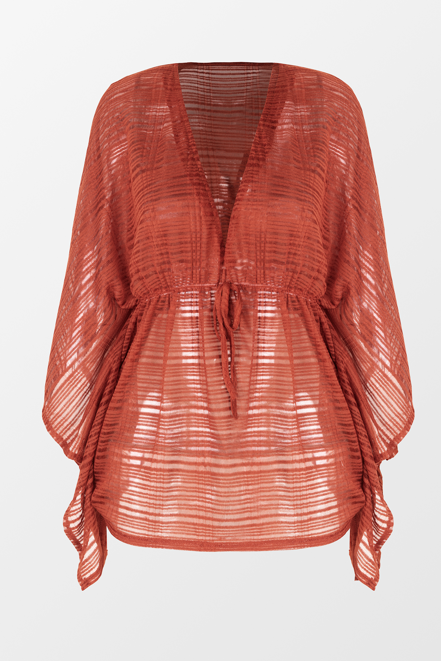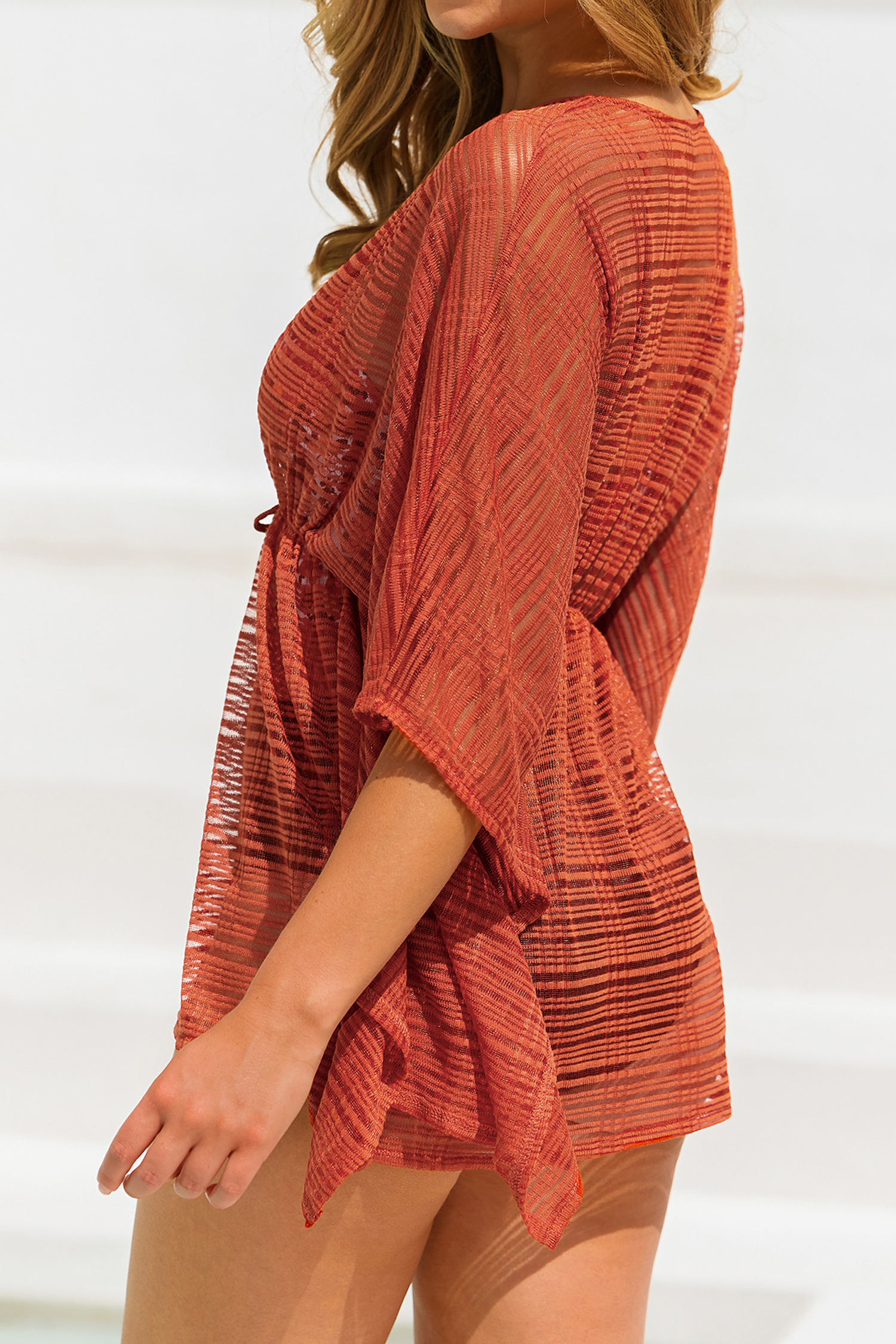 HomeStriped Mesh Drawstring Cover-Up Dress