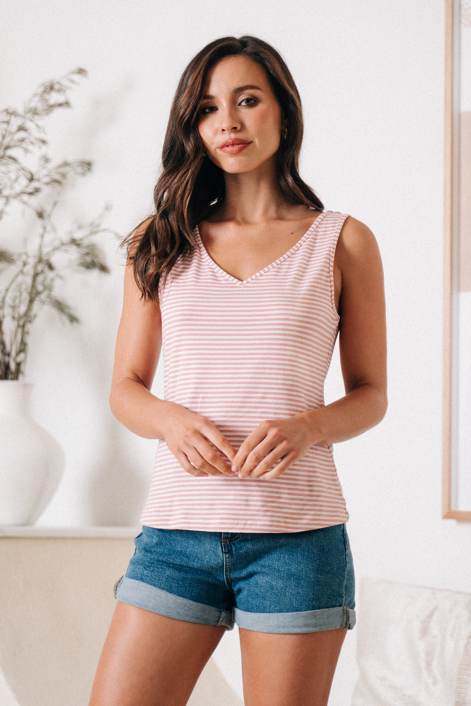 Stripes V-neck Jersey Tank