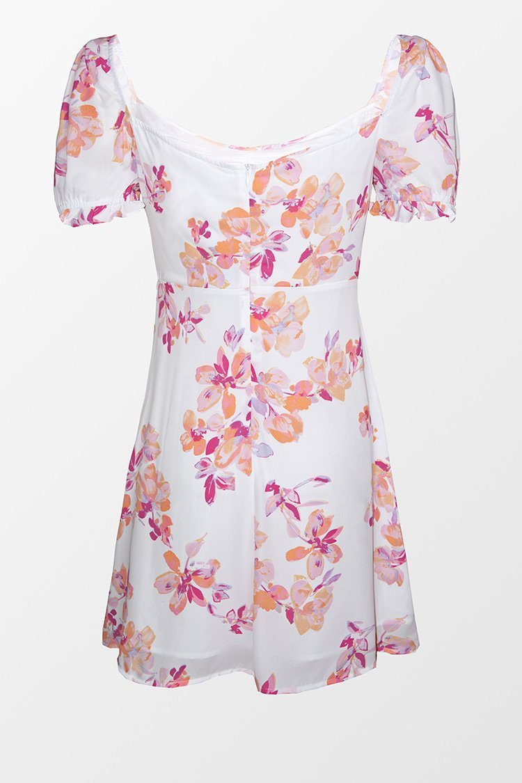 HomeSummer Floral Puffed Sleeve Ruched Dress