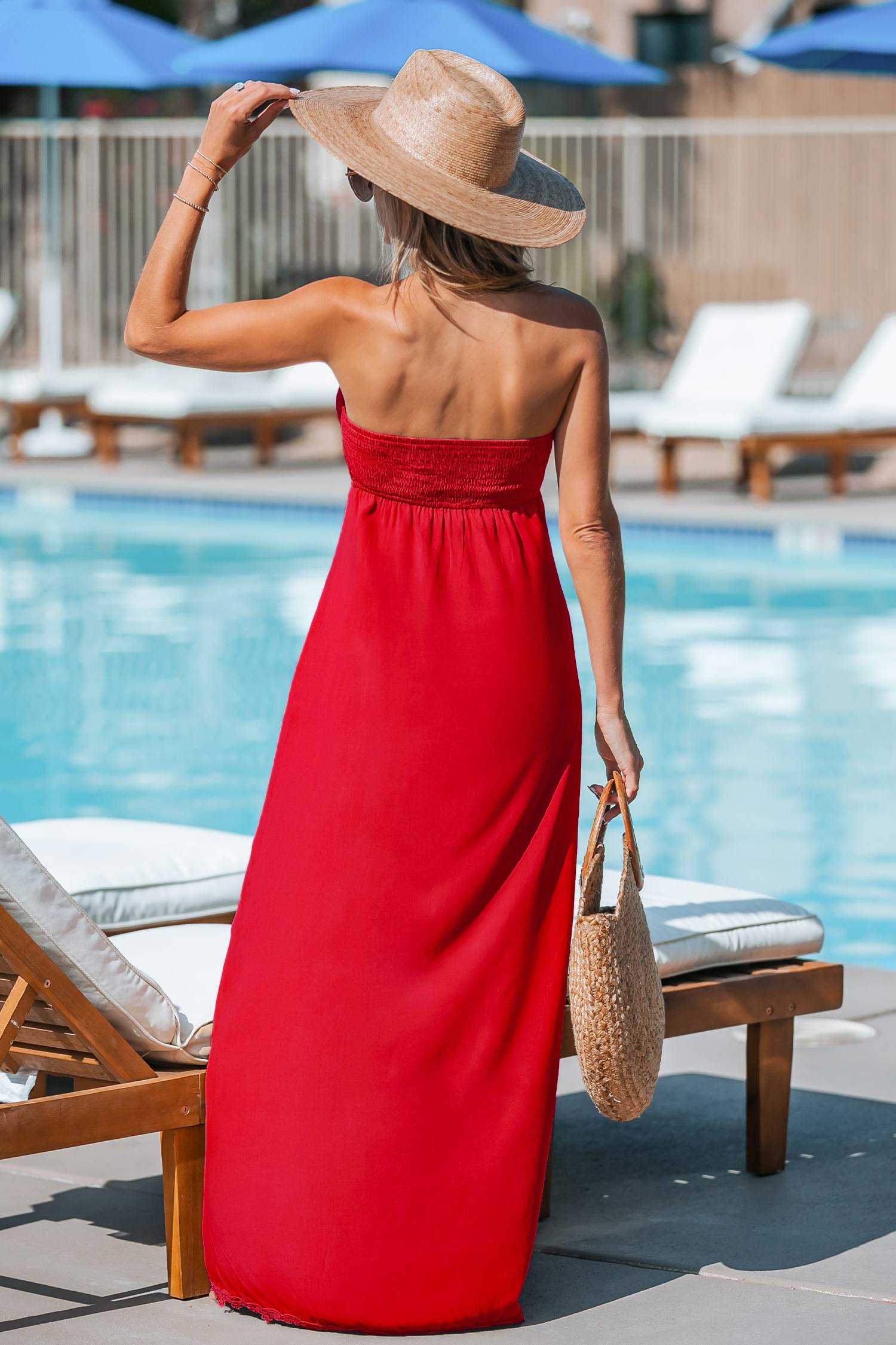 The Sunday Spritz Red Maxi Dress is made for Sunday brunch and warm afternoons! Featuring a straight neckline, sleeveless design, and a flowing maxi silhouette with a split hem, it’s effortlessly chic and endlessly wearable.