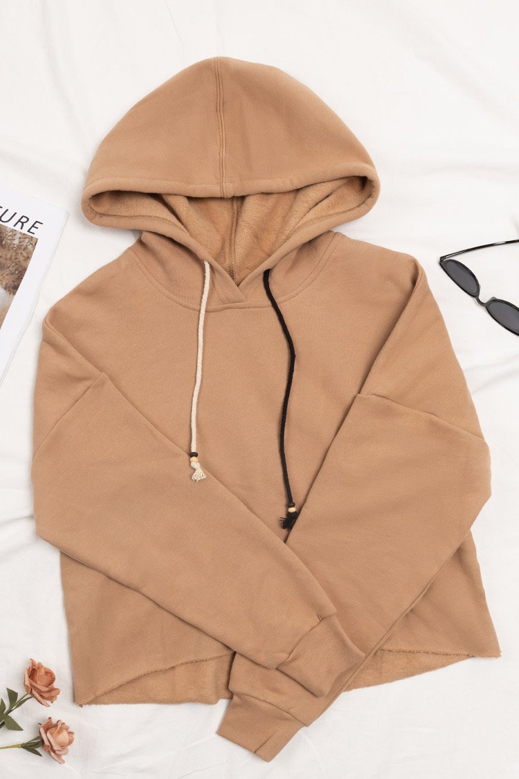 HomeTangerine Drawstring Front Drop Shoulder Hoodie