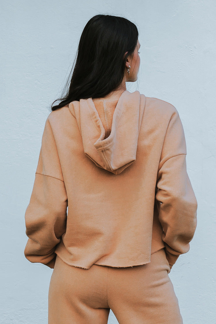 Tangerine Drawstring Front Drop Shoulder Hoodie