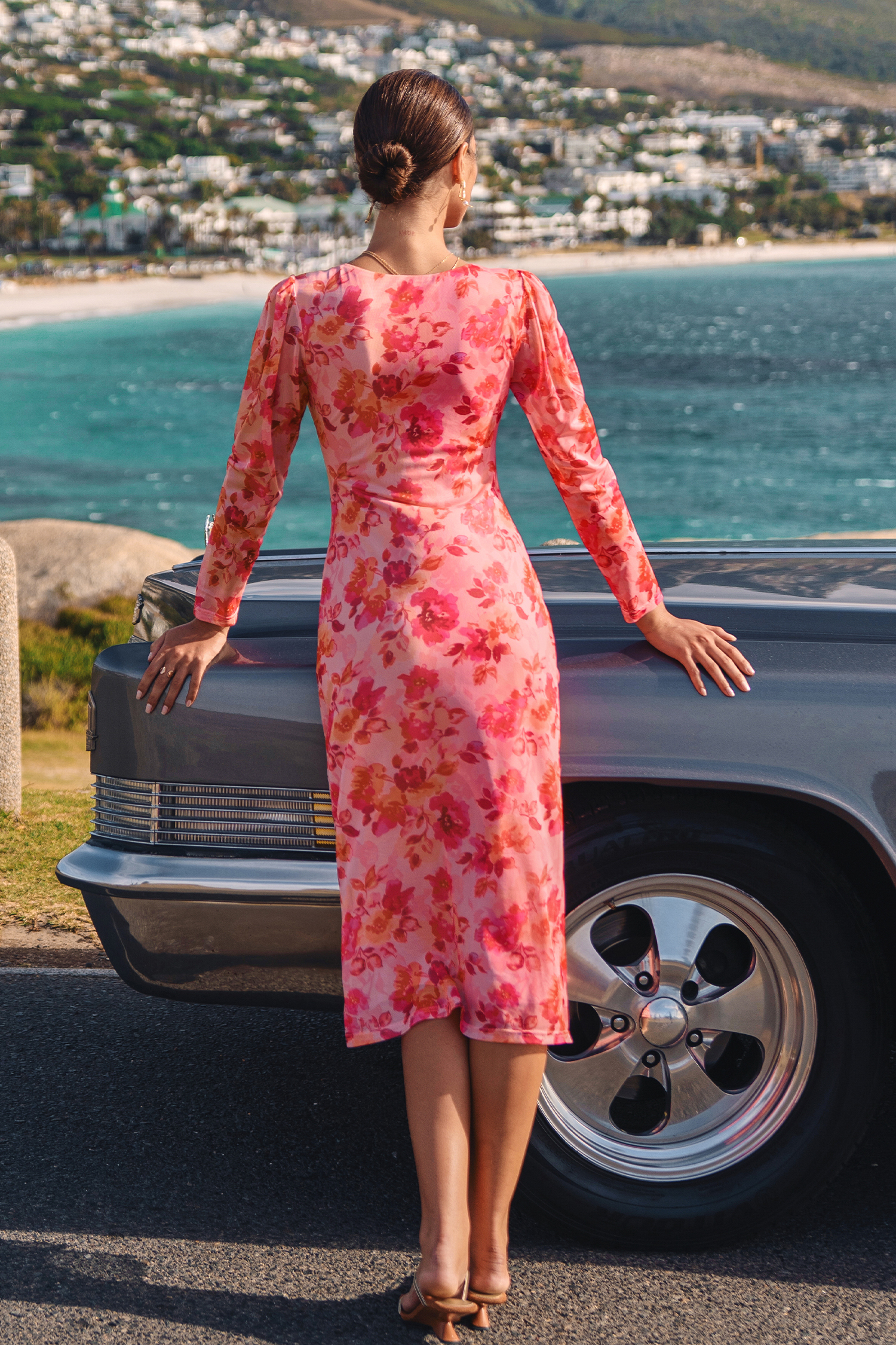 The Tell Me More Floral Midi Dress is made for when you want all eyes on you! A plunging neckline, long sleeves, and midi length keep the look balanced and flattering.