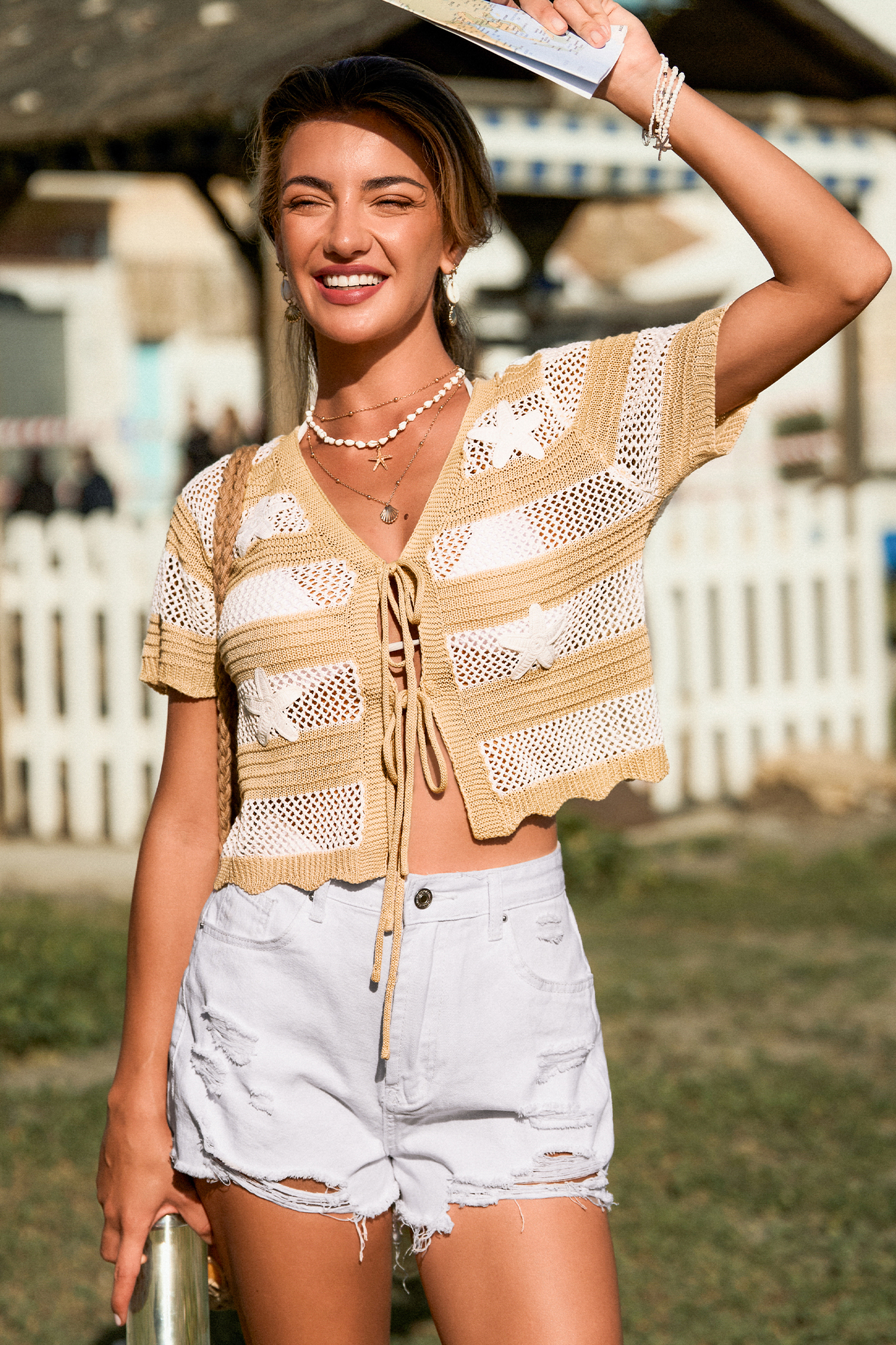 The Toasted Marshmallow Striped Cover-Up Top keeps things warm and easy! A V-neckline and short sleeves give it a relaxed feel, while the front-tie detail adds a laid-back touch that pairs perfectly with your swim.