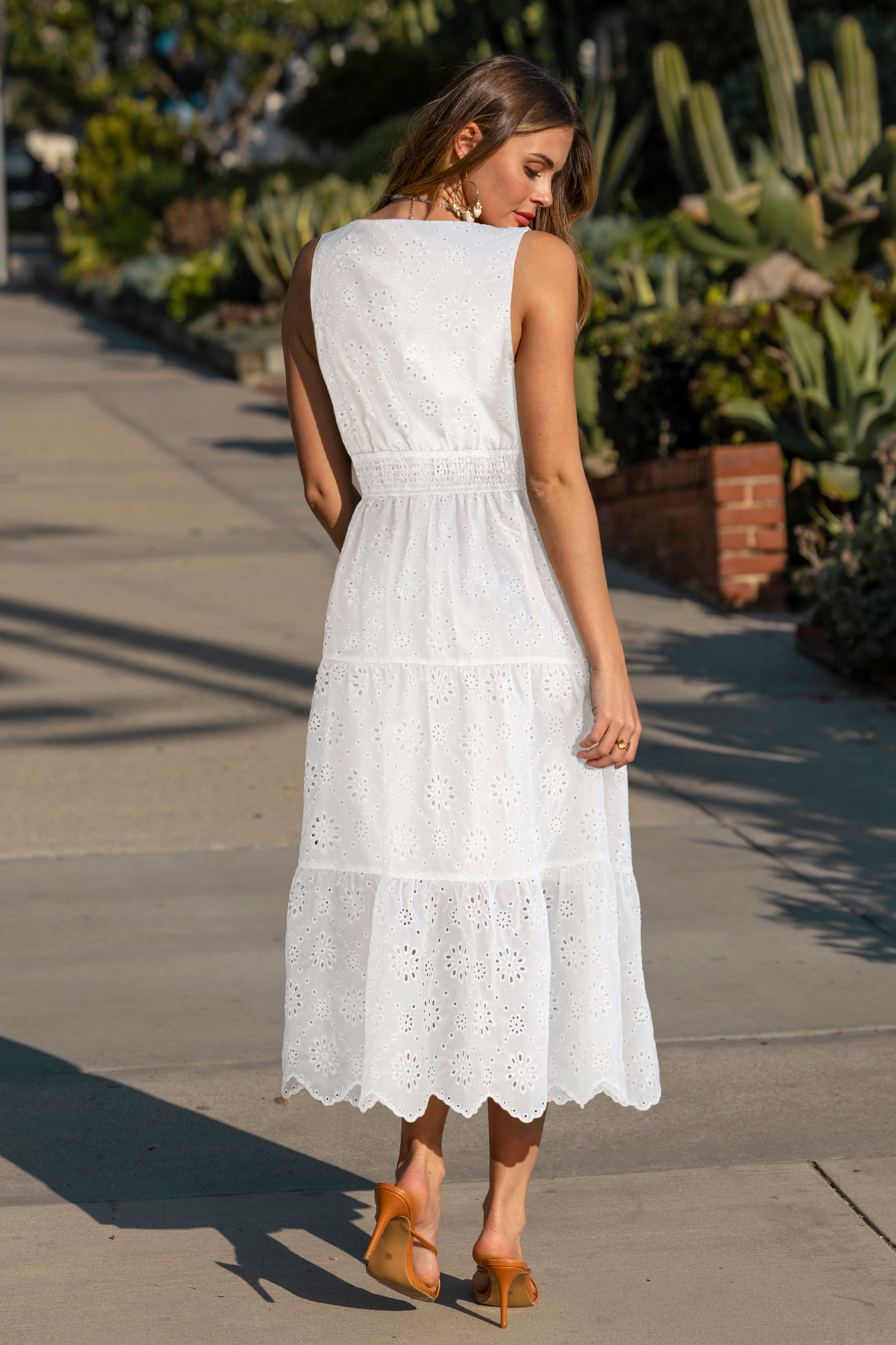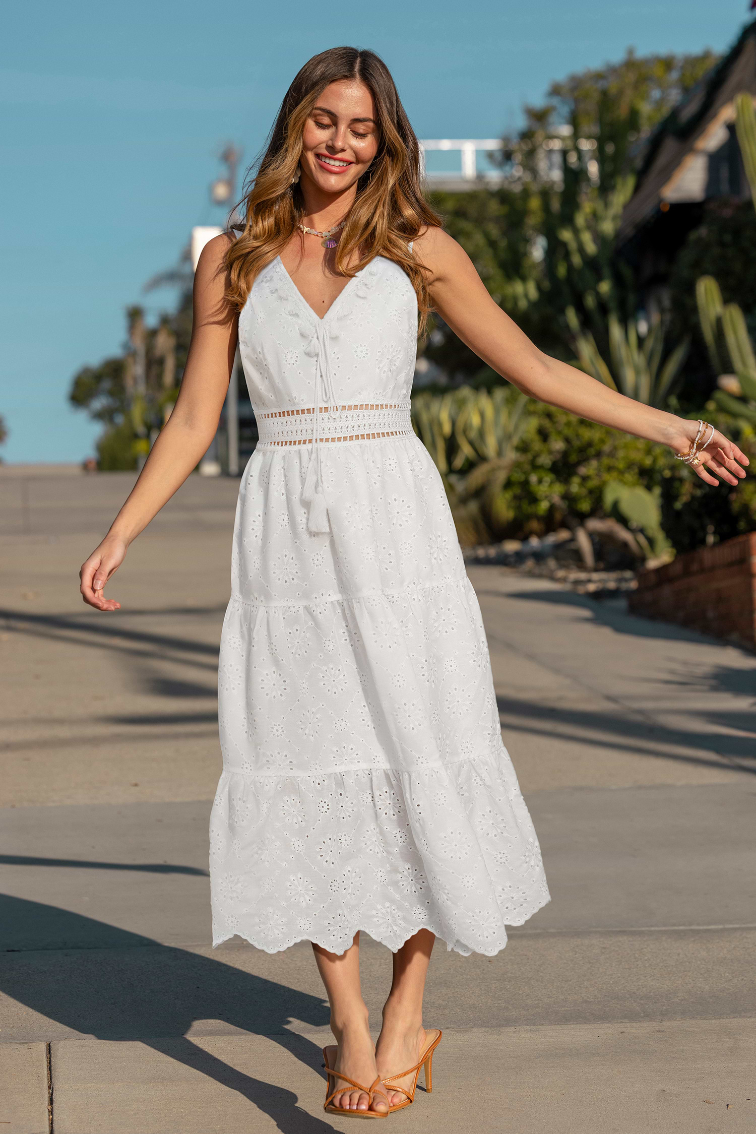 The Tropical Wind White Maxi Dress moves with every breeze and keeps the mood effortless! The v-neckline, sleeveless cut, tassel trim, and maxi length give it flowy, easy energy that’s perfect for sunkissed days.