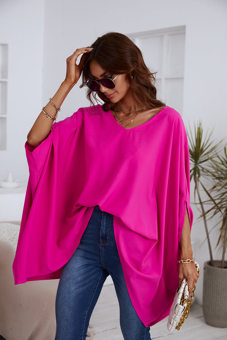 HomePink V-neck Short Sleeve Loose Waisted Top