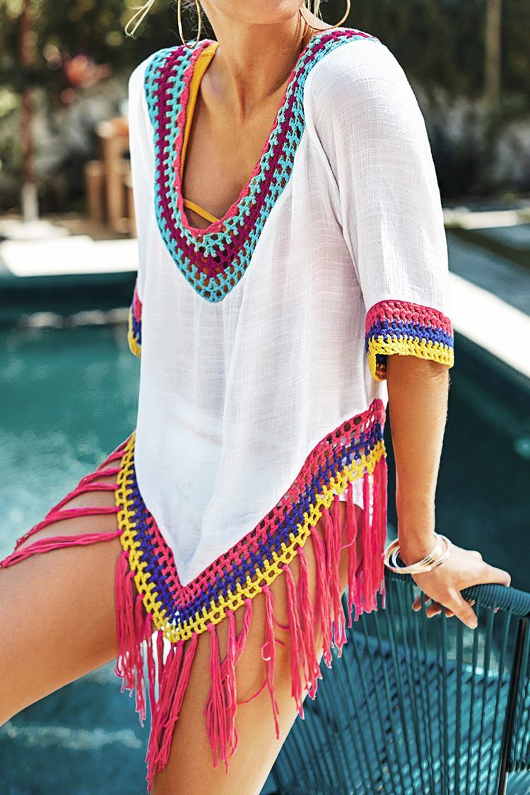 HomeWhite Cover Up with Rainbow Crochet Trim