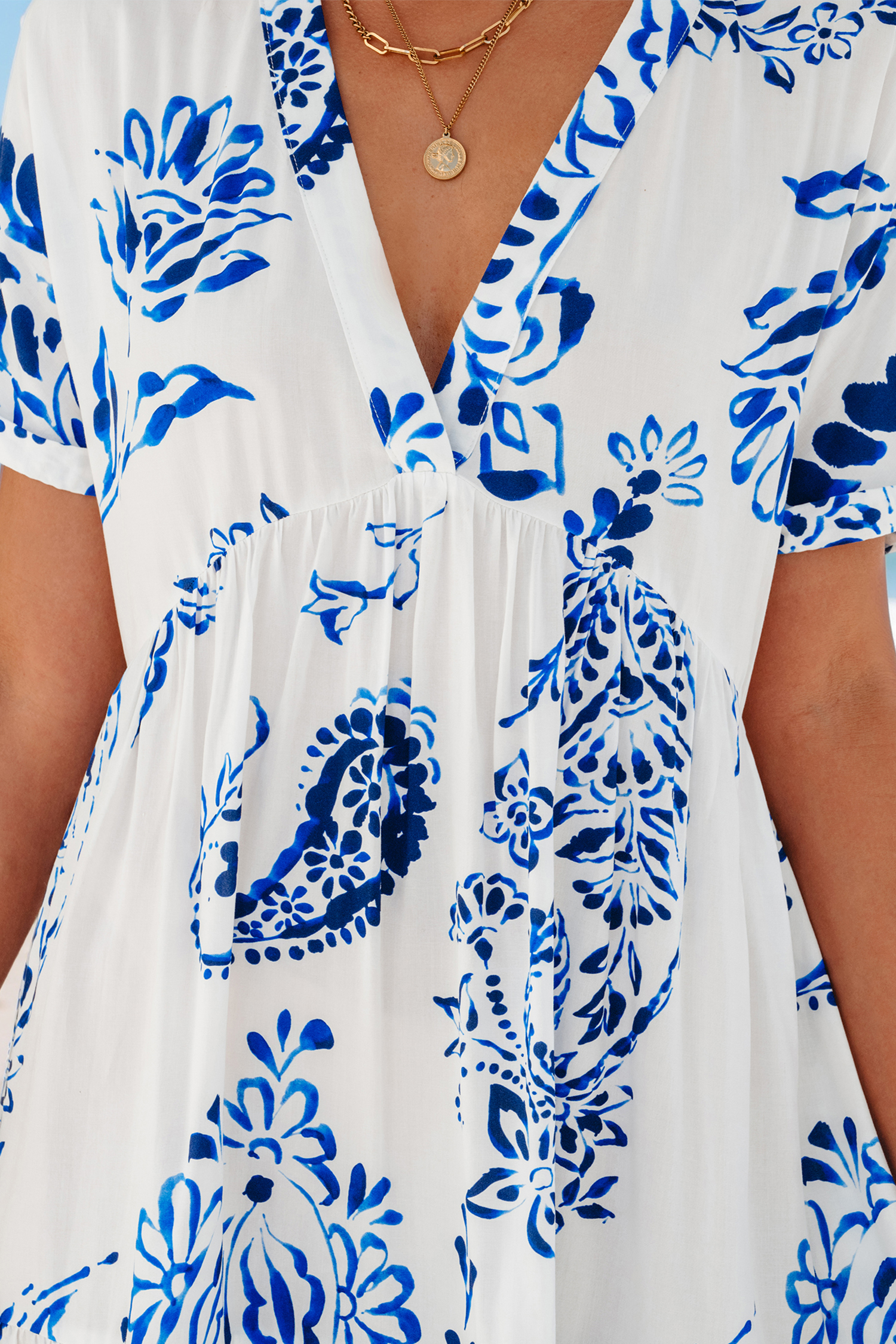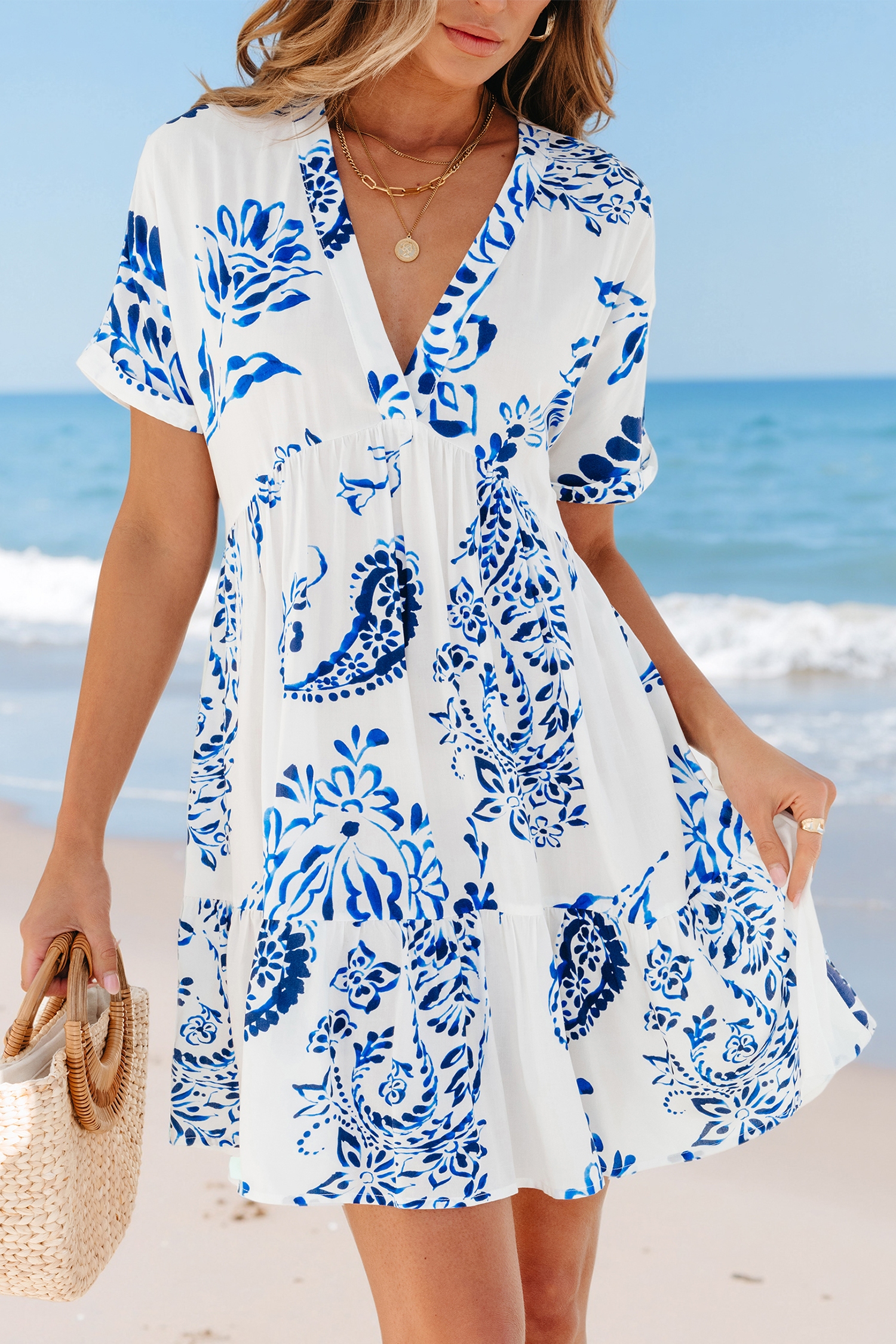 HomeWhite Paisley V-Neck Cover-Up Mini Dress