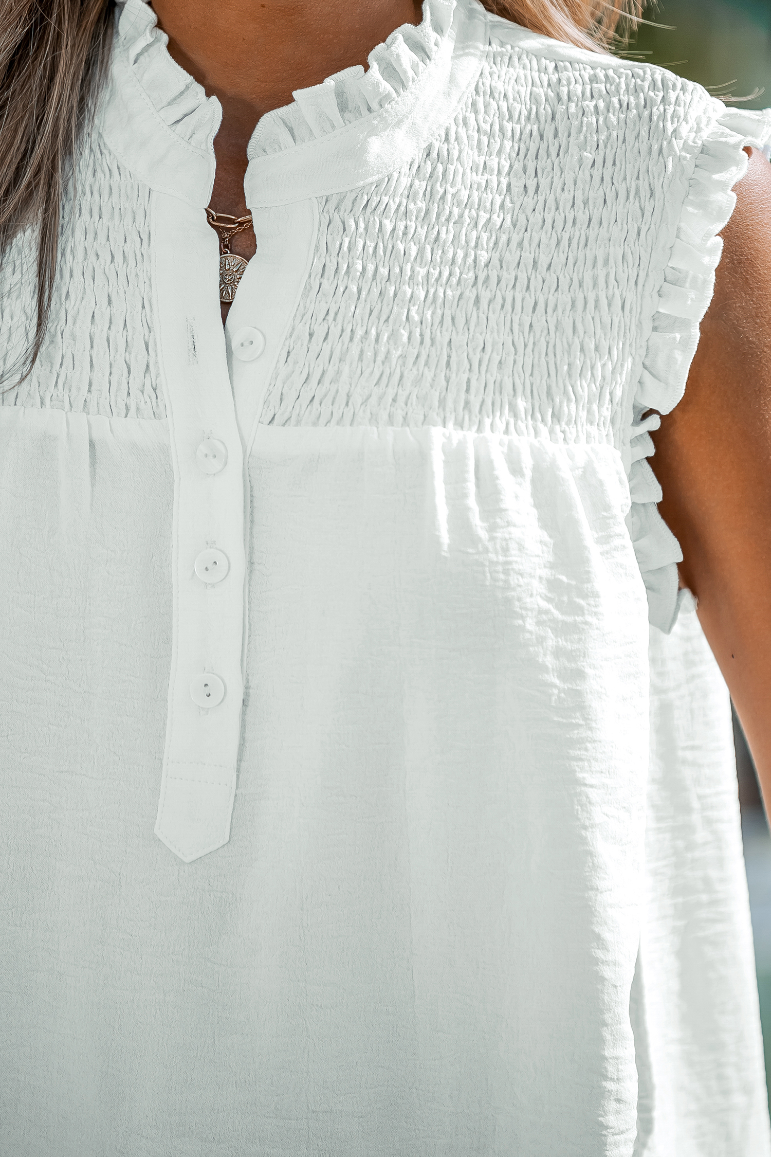 HomeCotton White Pleated & Smocked Sleeveless Top