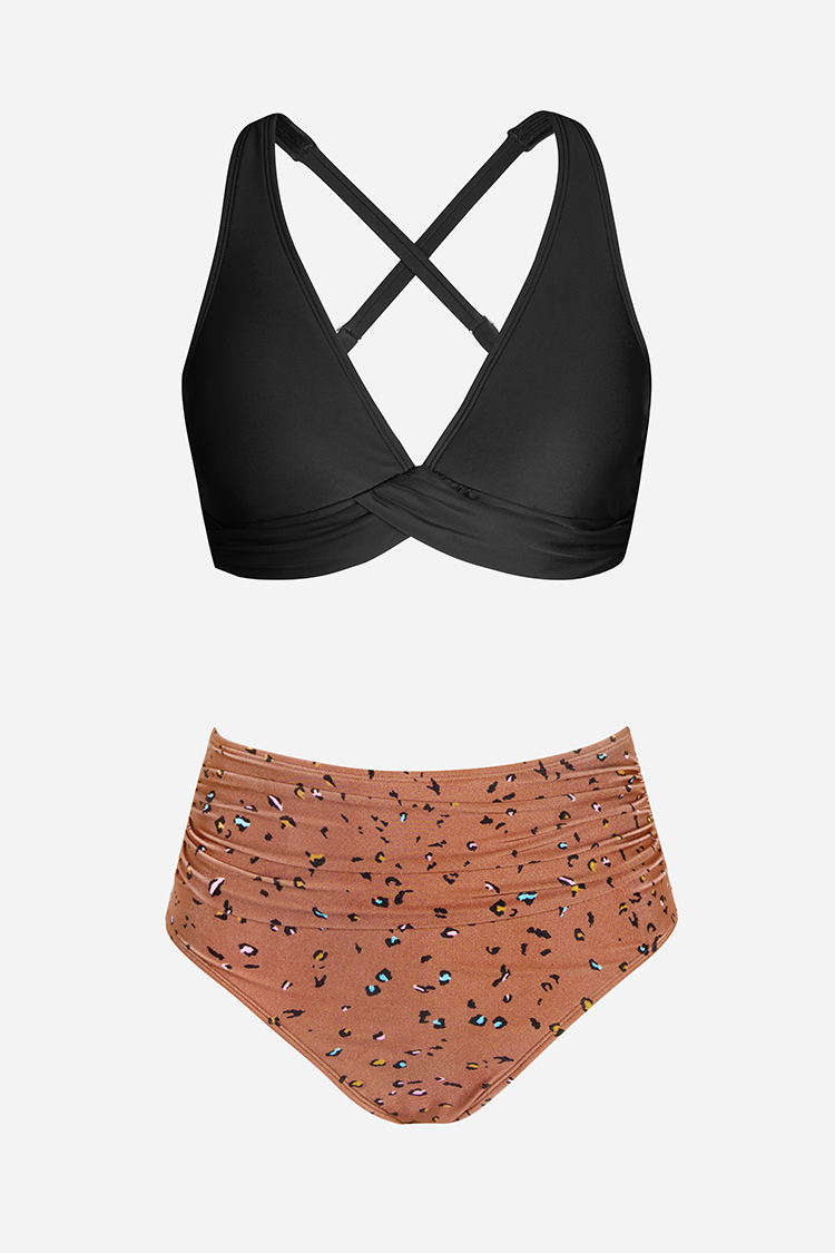 Wrap Front Bralette & Intimate Animal High Waist Bikini Set