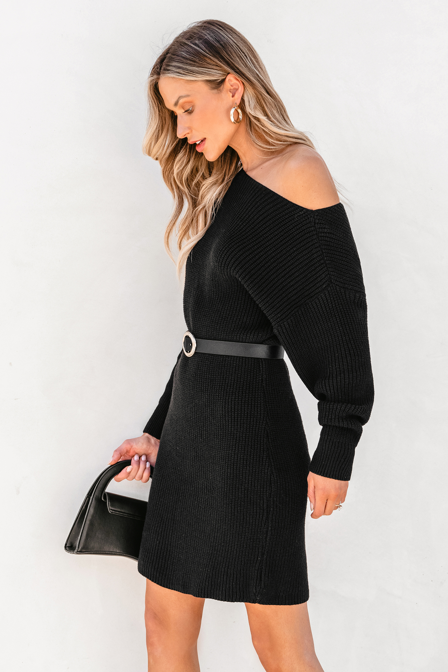 HomeDisco O-Ring Belt Off-the-Shoulder Dress