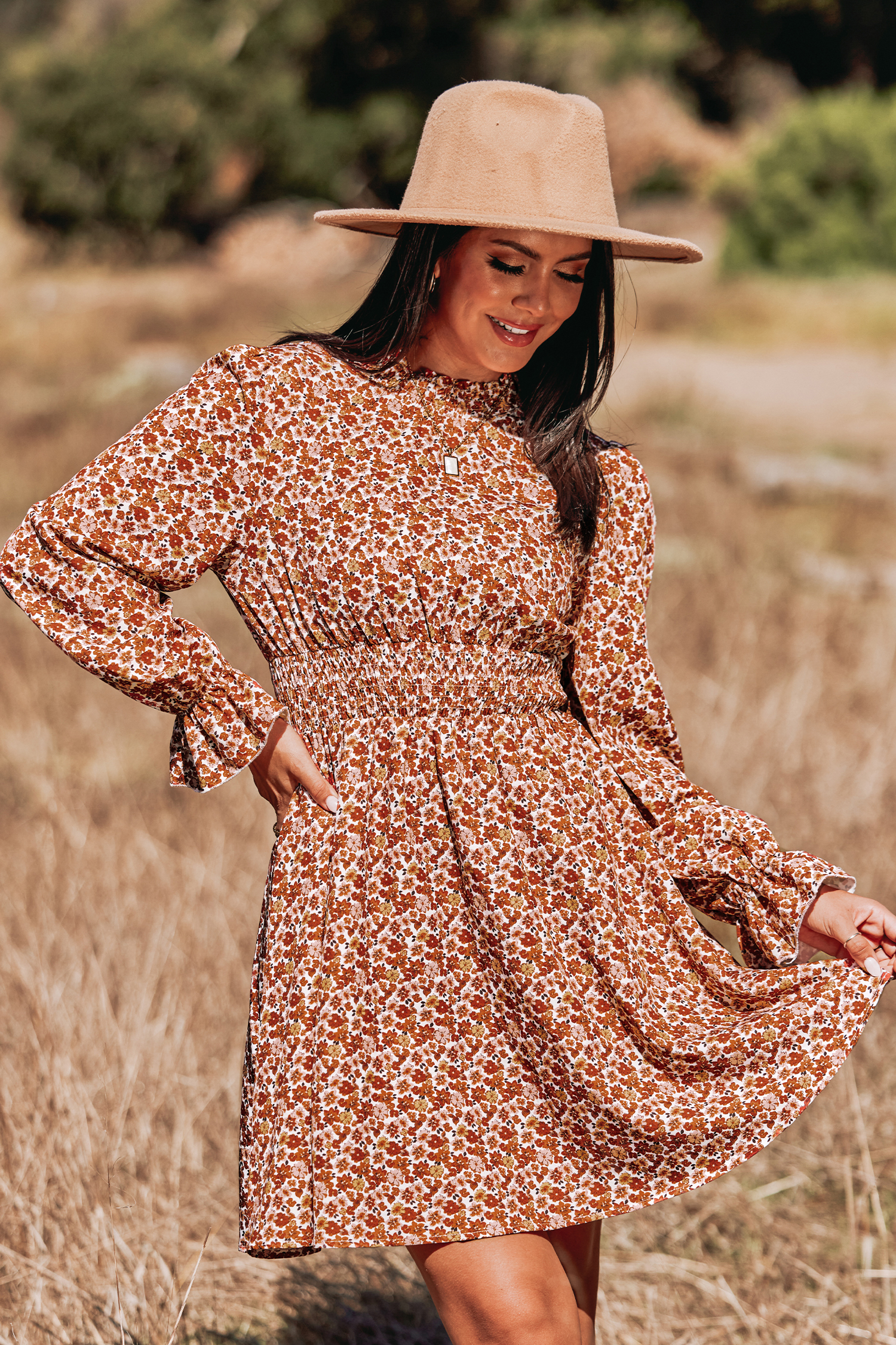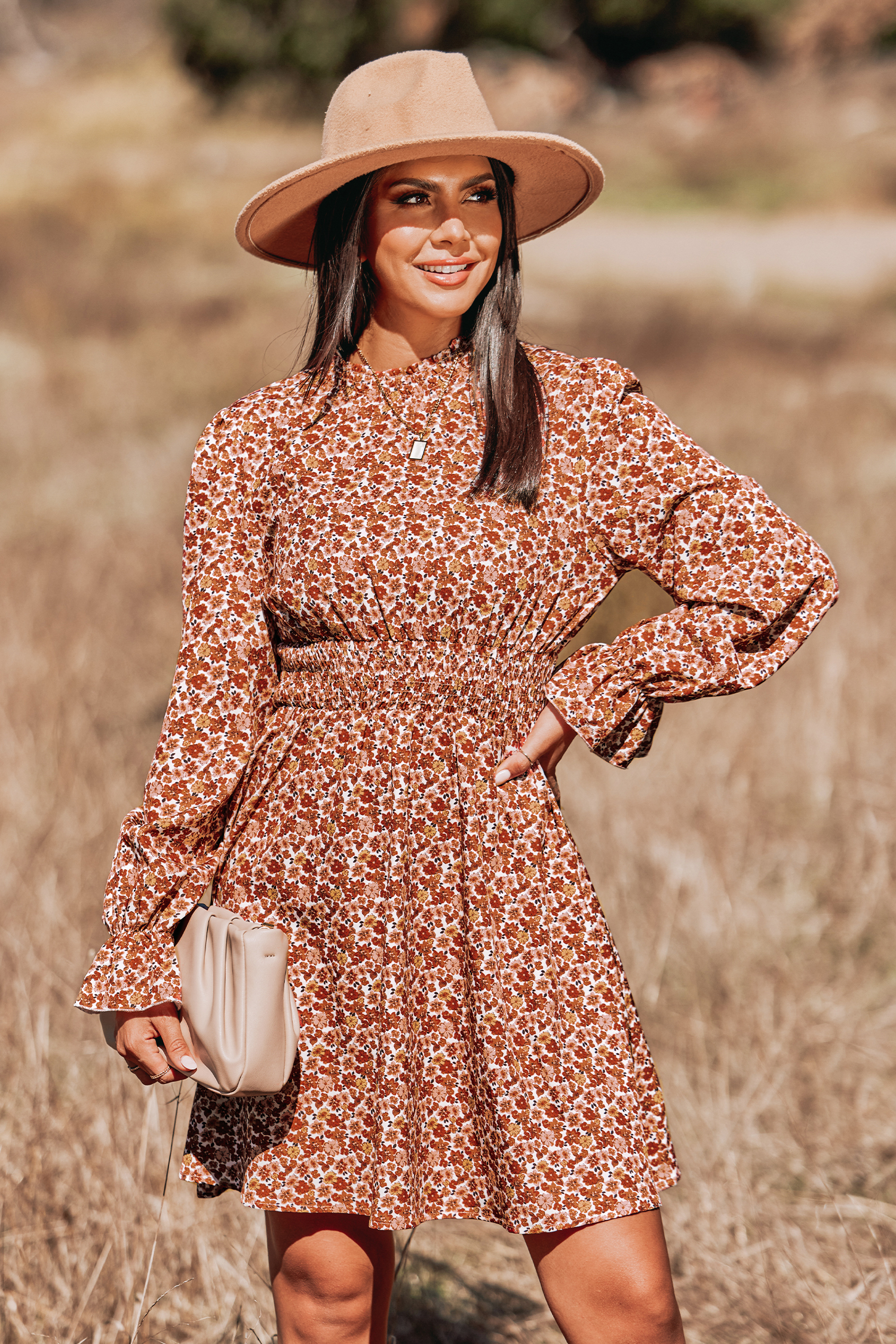 Ditsy Floral Print Ruffled Smocked Mini Dress